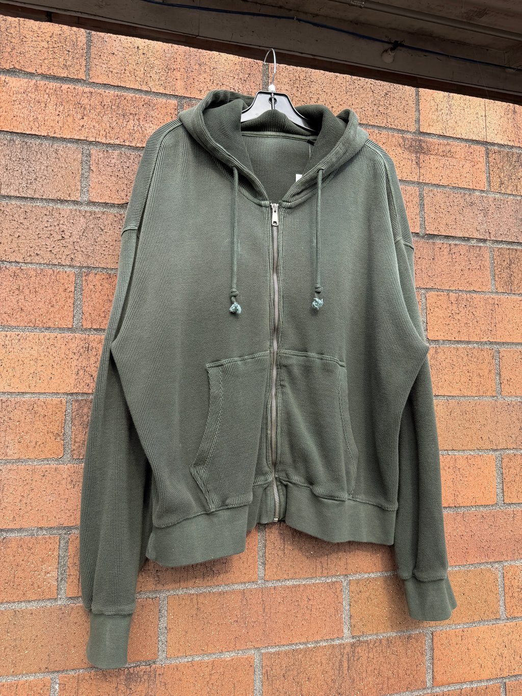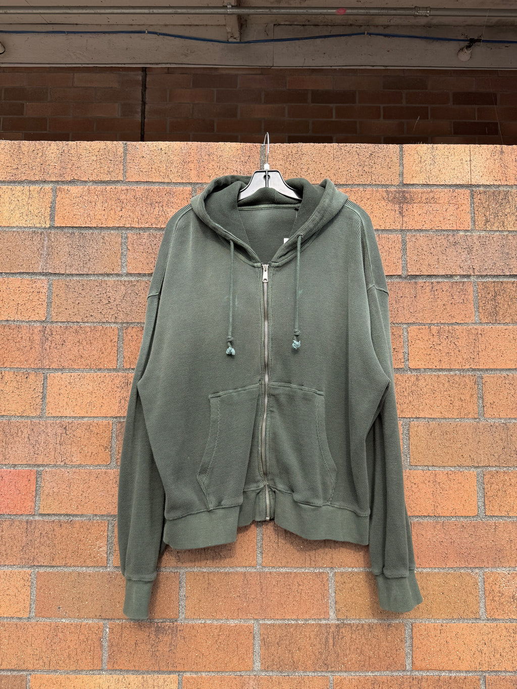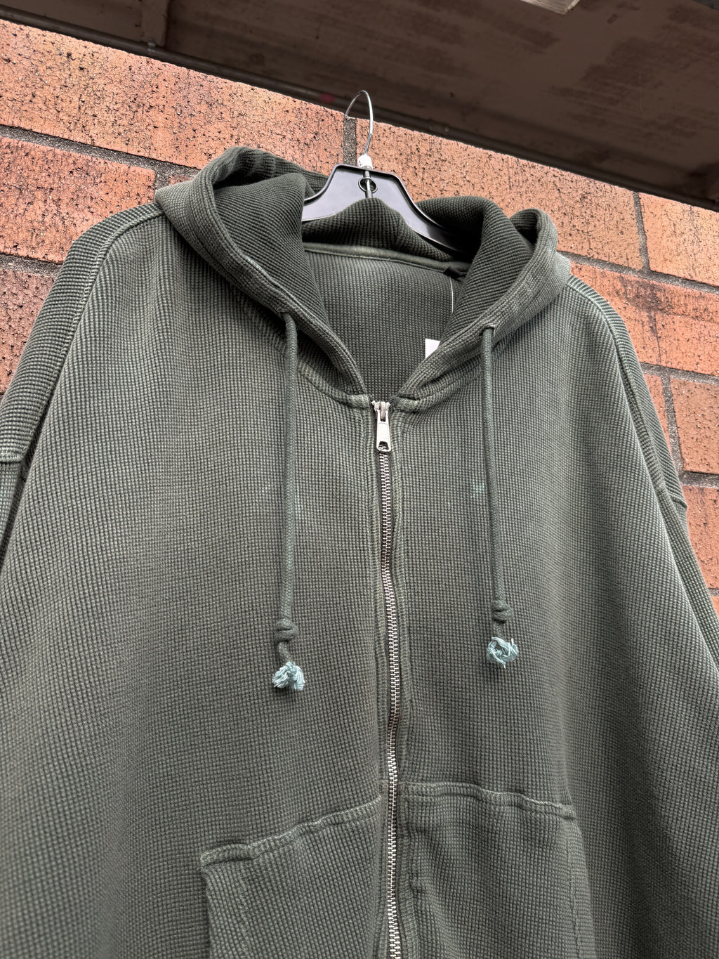 042 Clothing Sun Dried Waffle Knit Zip Up Hoodie Forest Green Size L