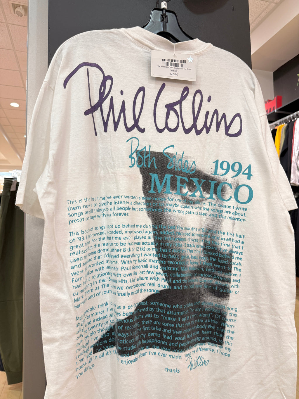 1994 Phil Collins Rare Bootleg Tour Tee Sz XL