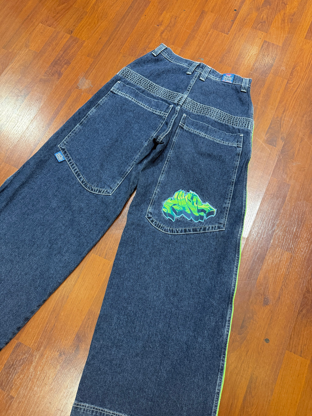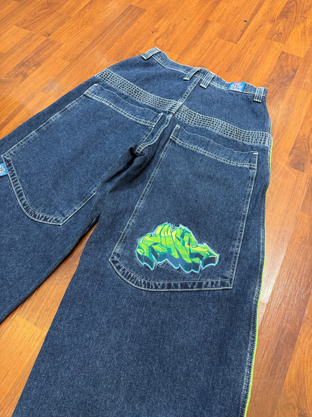 90s JNCO Jeans Westside Lime Green Graffiti Denim Sz 30x30