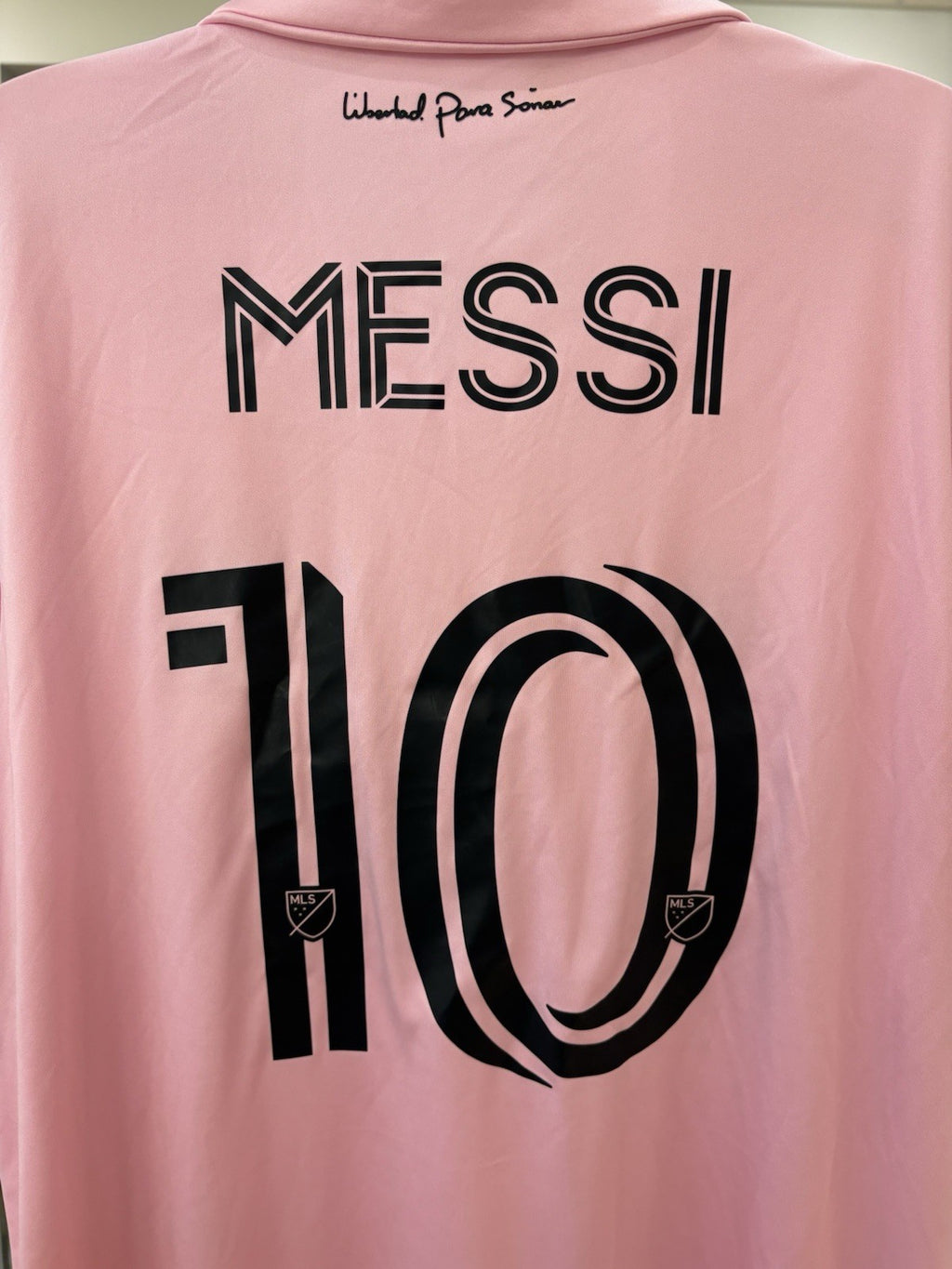 The product is an authentic home jersey for the 22/23 season of Inter Miami CF, designed in collaboration with Lionel Messi. Produced by adidas, it is in the signature pink color and size Medium. This jersey is specifically for fans of Major League Soccer (MLS) and soccer in general, providing a unique and stylish way for supporters to show their allegiance to the team and player. Perfect for game days or casual wear, this jersey combines quality, design, and fan spirit for an essential piece of fan apparel.