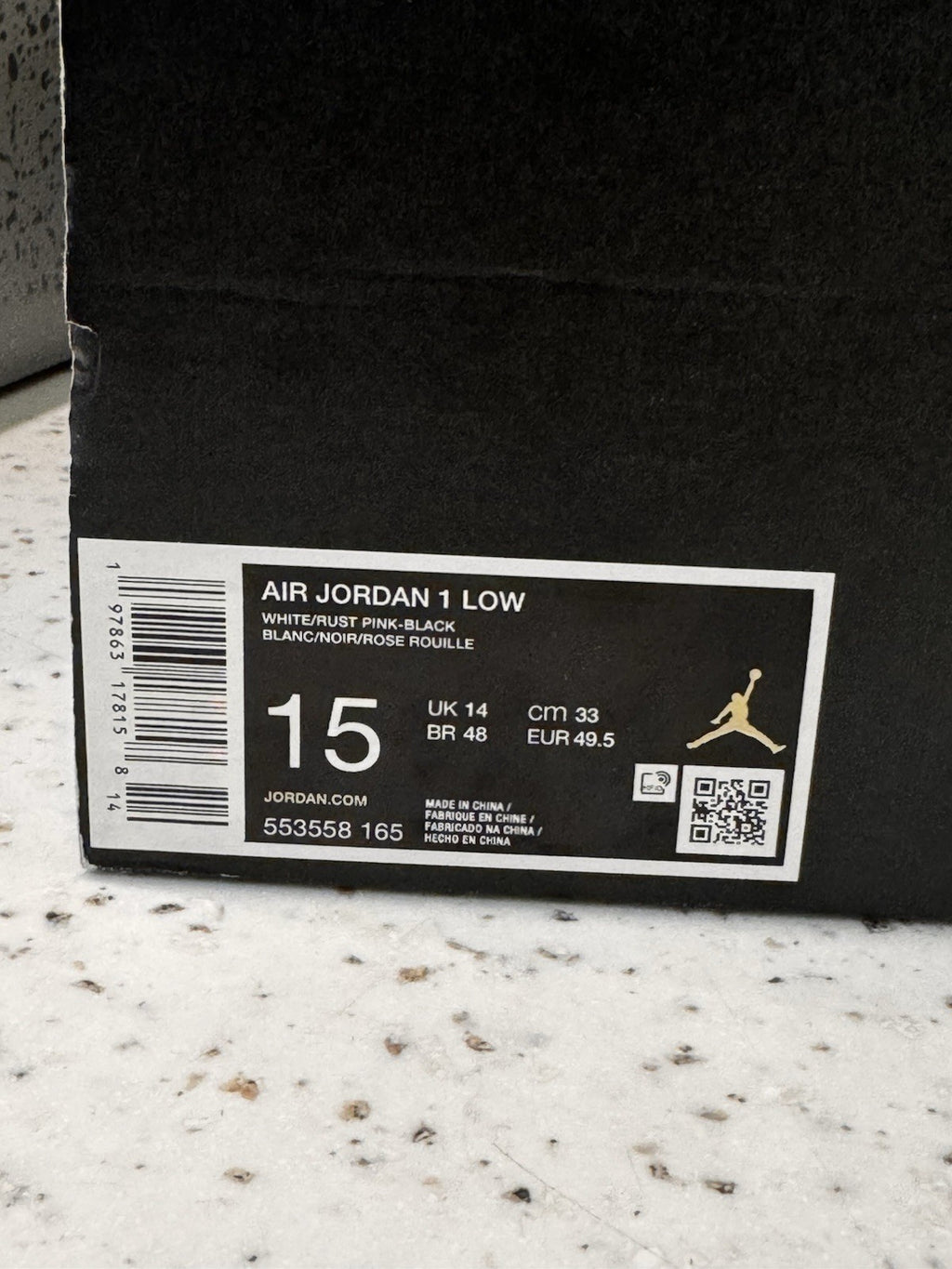The Air Jordan 1 Low Black Rust Pink in size 15 is a stylish and high-quality athletic shoe perfect for men who appreciate the iconic Jordan brand. With a sleek low-top silhouette and a luxurious leather upper, these sneakers offer both comfort and style. The color combination of black and rust pink adds a unique and modern touch to the classic Air Jordan 1 model. Released in the year 2025, these shoes are sure to be a standout addition to any sneaker collection.