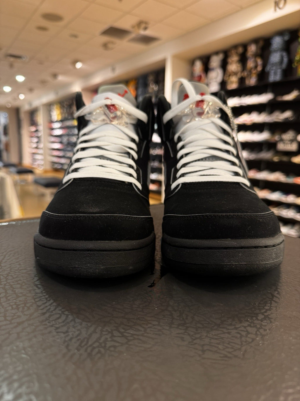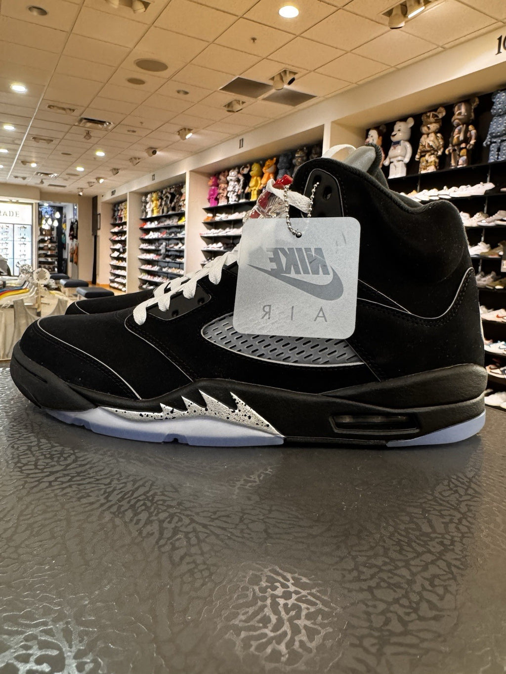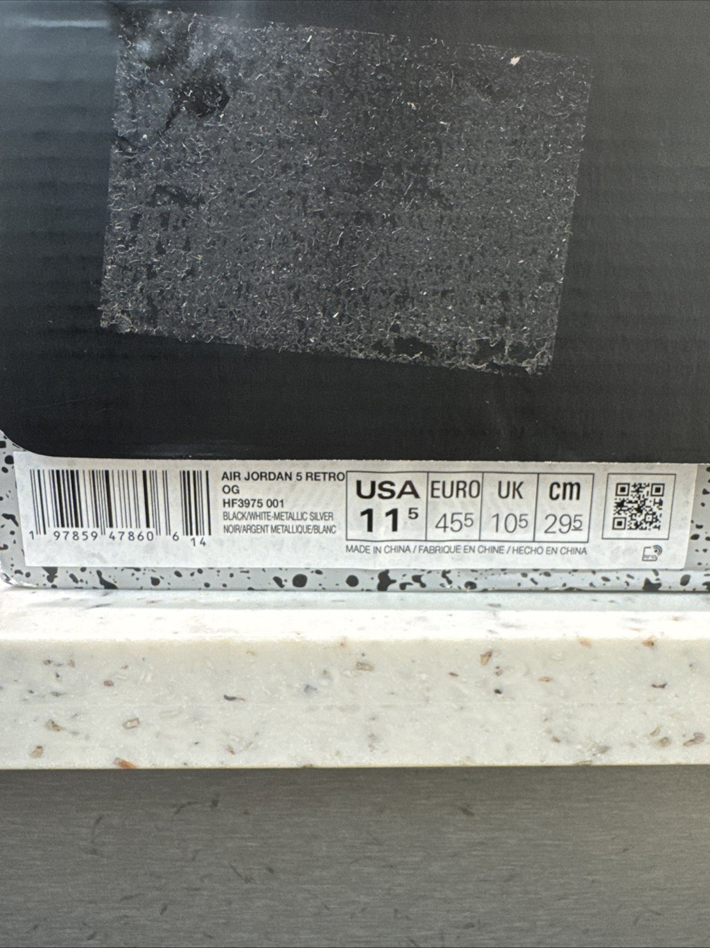 The product is a reimagined Air Jordan 5 Retro OG Black Metallic sneaker in size 11.5. This athletic shoe features a black nubuck upper material and belongs to the Air Jordan product line. Released in 2025 with the style code HF3975-001, this sneaker is a stylish and iconic choice for men who appreciate quality footwear. The reimagined design stays true to the original Air Jordan 5 silhouette while incorporating updated detailing and technology for a modern twist on a classic silhouette.
