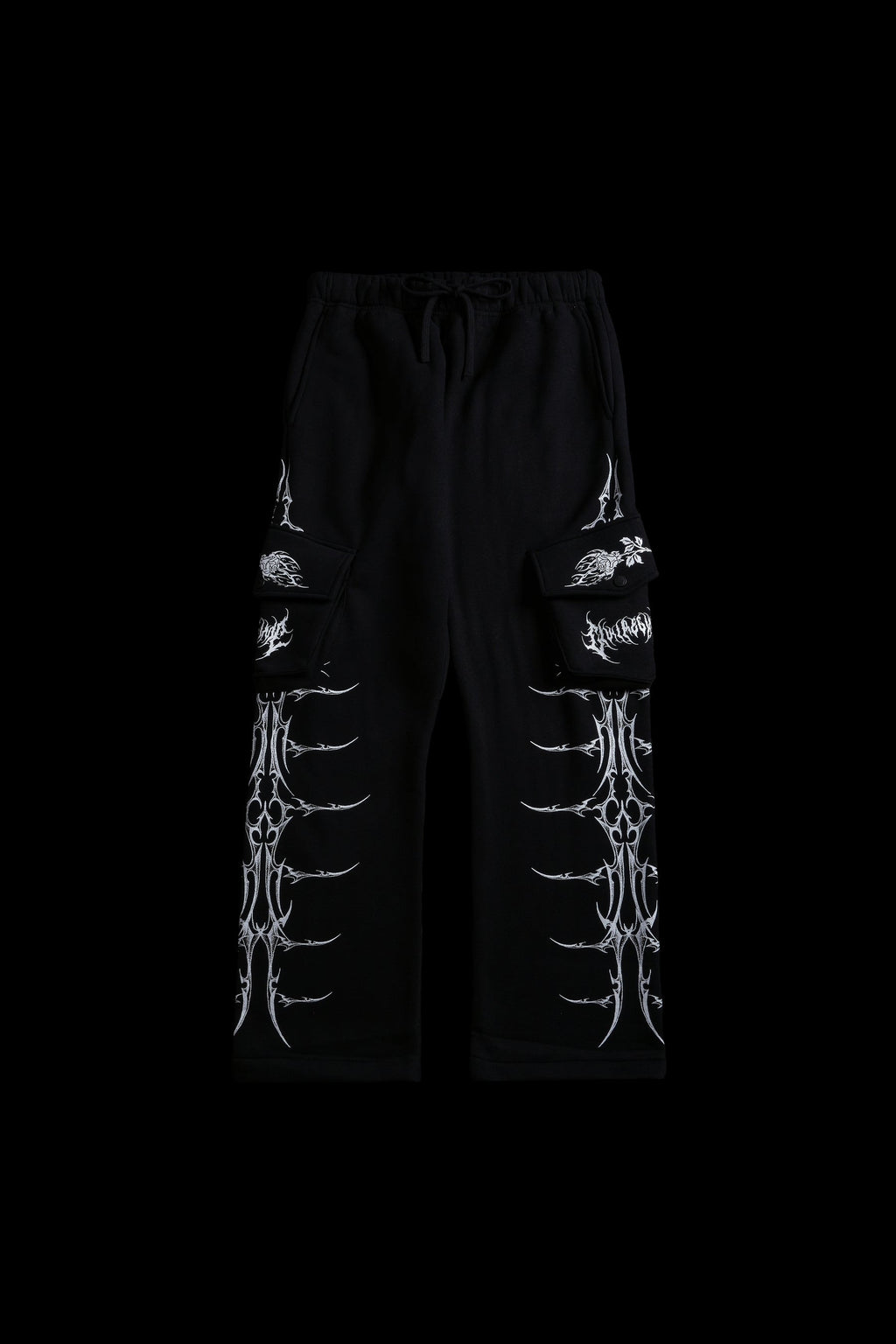 Civil Regime Wide Leg Cargo Fleece Pants Black Sz L