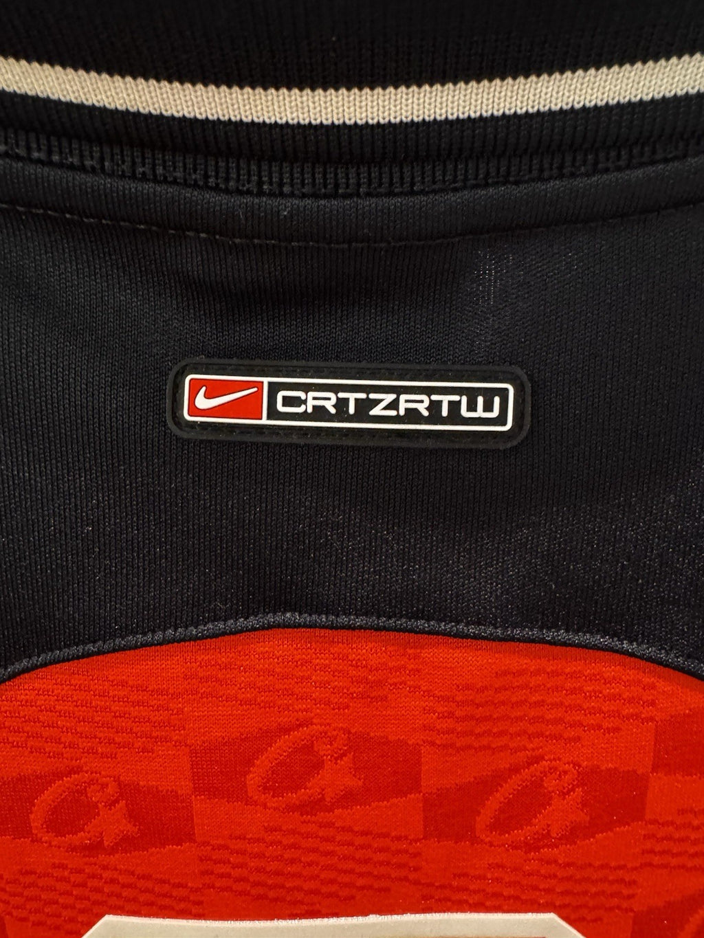 The Corteiz x Nike NRG Jersey Team Orange in size S is a stylish and comfortable activewear top for men. Made of jersey fabric, this orange jersey features the iconic Nike brand logo and is perfect for wearing during sports activities or casual outings. The regular fit and small size make it a great choice for those looking for a high-quality and fashionable addition to their wardrobe.