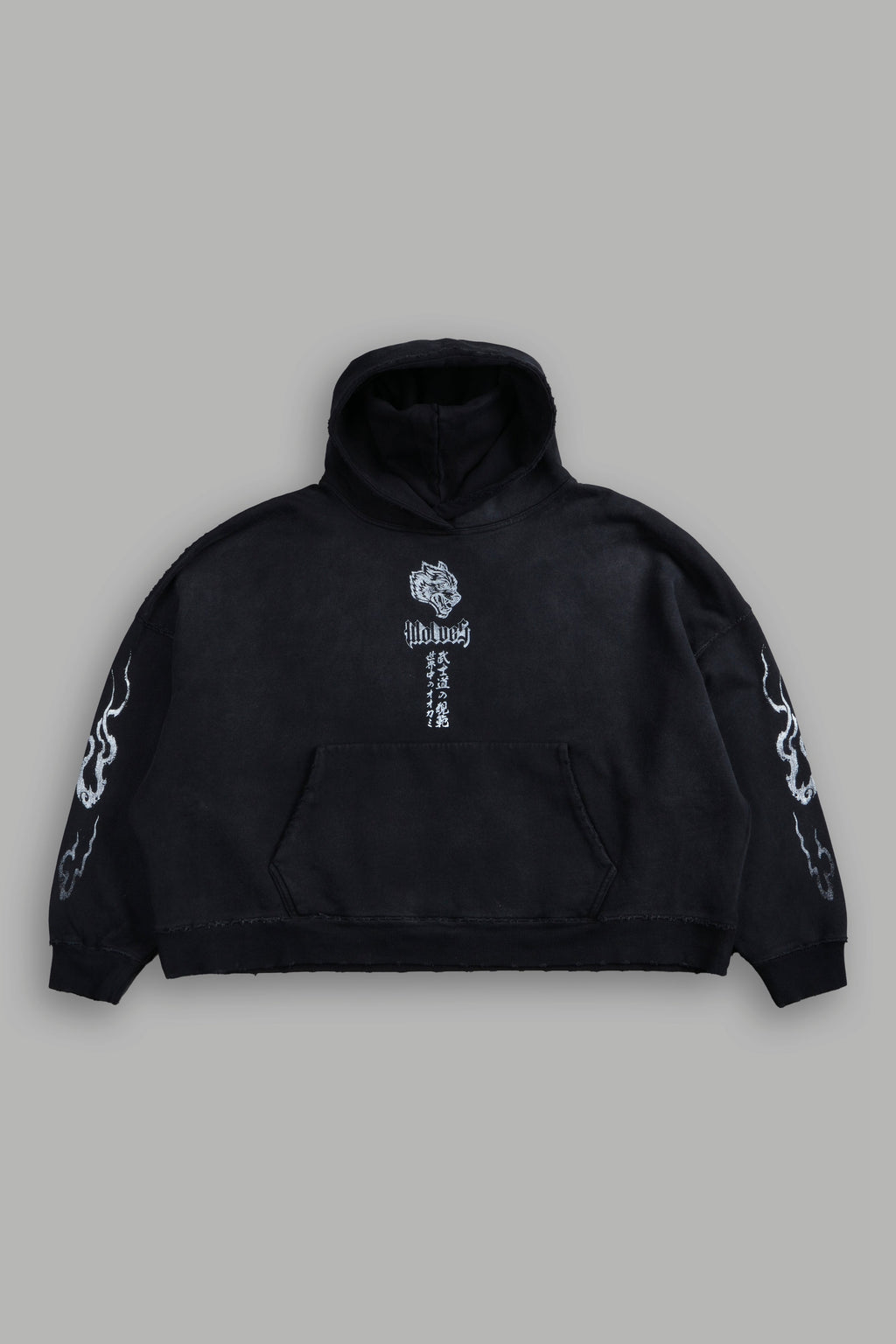 Darc Sport Infernal Destroyed Grunge Gage Box Cut Hoodie Black Sun Fade Sz L