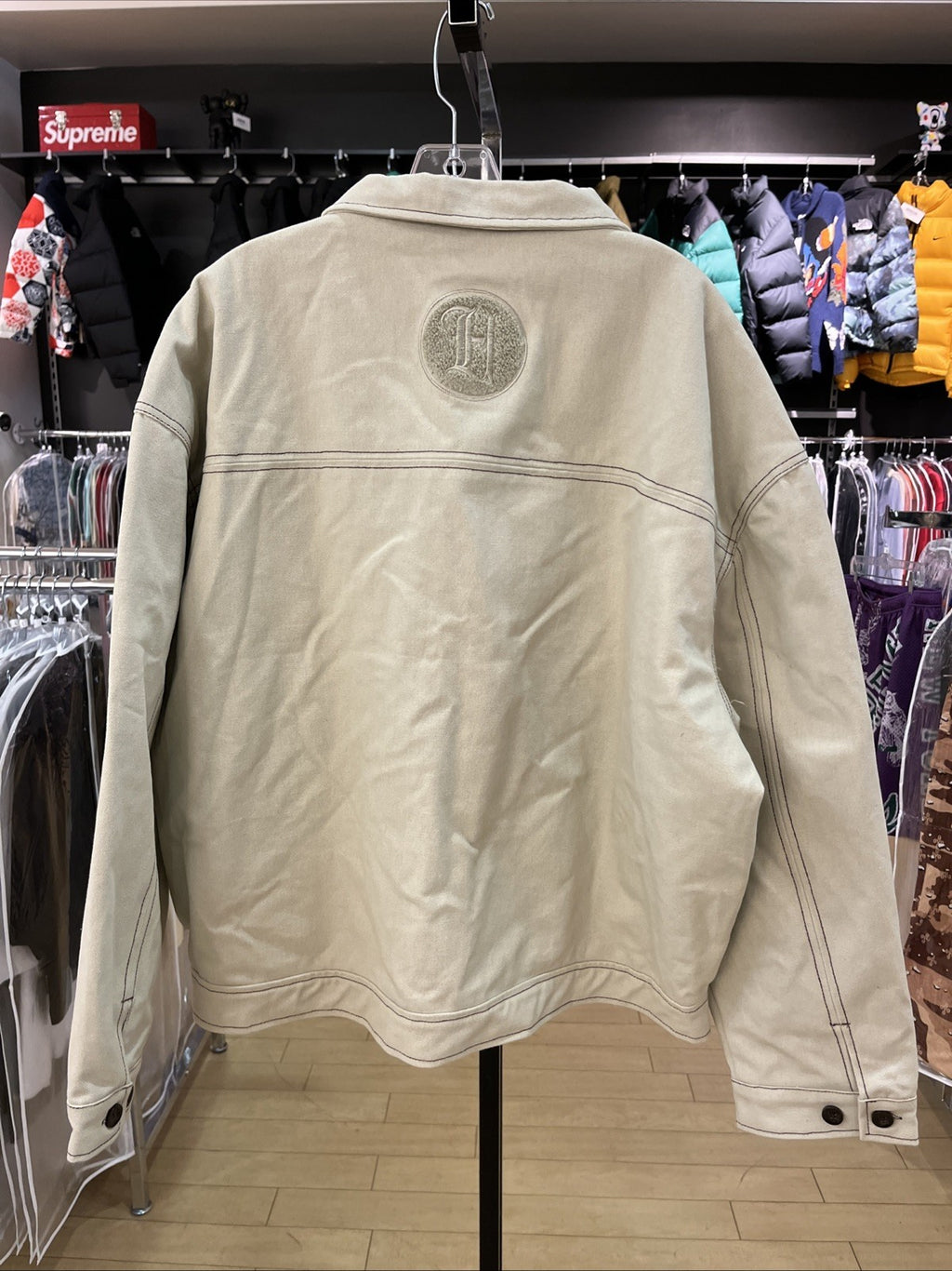 The Honor The Gift Jacket in size XL is a stylish and versatile outerwear piece perfect for various occasions such as travel, parties, casual outings, work, and business meetings. Made from durable polyester material with a lightweight design, this mid-length overcoat features a classic cream color with embroidered accents and a button closure. It also includes a collared neckline, pockets for added functionality, and is suitable for all seasons, making it a practical and fashionable choice for the modern man.
