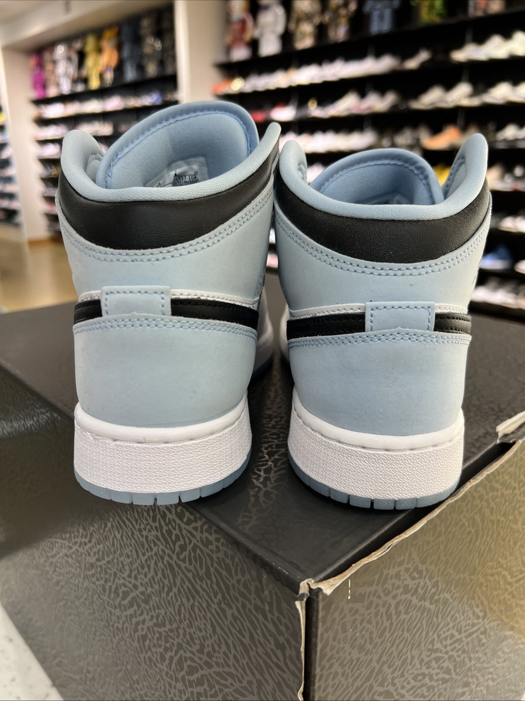 The Nike Air Jordan RETRO 1 MID SE ICE BLUE in size 6Y is a stylish and versatile sneaker for kids. This athletic shoe features a classic Air Jordan 1 Mid SE design with a retro theme, perfect for school or casual wear. With a color combination of white, ice blue, and black, these sneakers offer both style and comfort for young sneaker enthusiasts. The iconic Air Jordan brand, coupled with the trendy design, makes these shoes a must-have for kids looking to make a statement with their footwear.