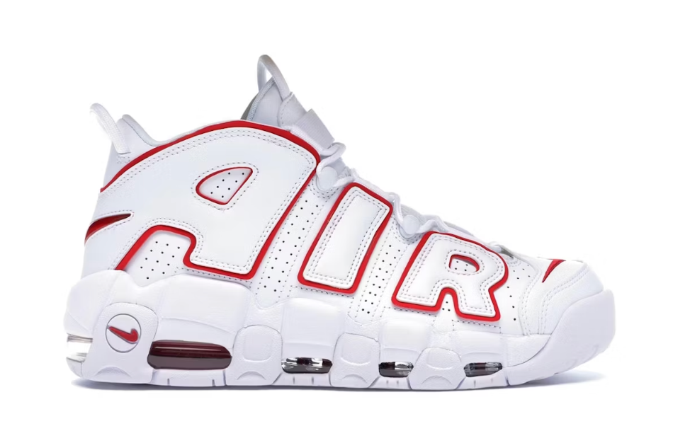 Nike Air More Uptempo White Varsity Red Outline SZ 10.5 NO BOX YELLOWING