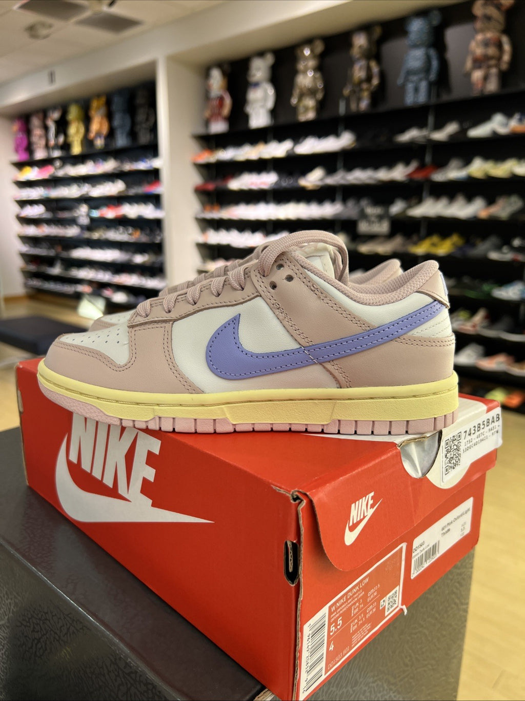The Nike Dunk Low Pink Oxford Women's Sz 5.5Y is a stylish and comfortable sneaker perfect for casual occasions. With a rubber outsole and leather upper material, this shoe offers both durability and a trendy look. The low top design and lace-up closure provide a secure fit, while the pink color scheme and Nike logo accents add a touch of flair. Whether for walking or everyday wear, this 2022 release is a great addition to any woman's shoe collection.