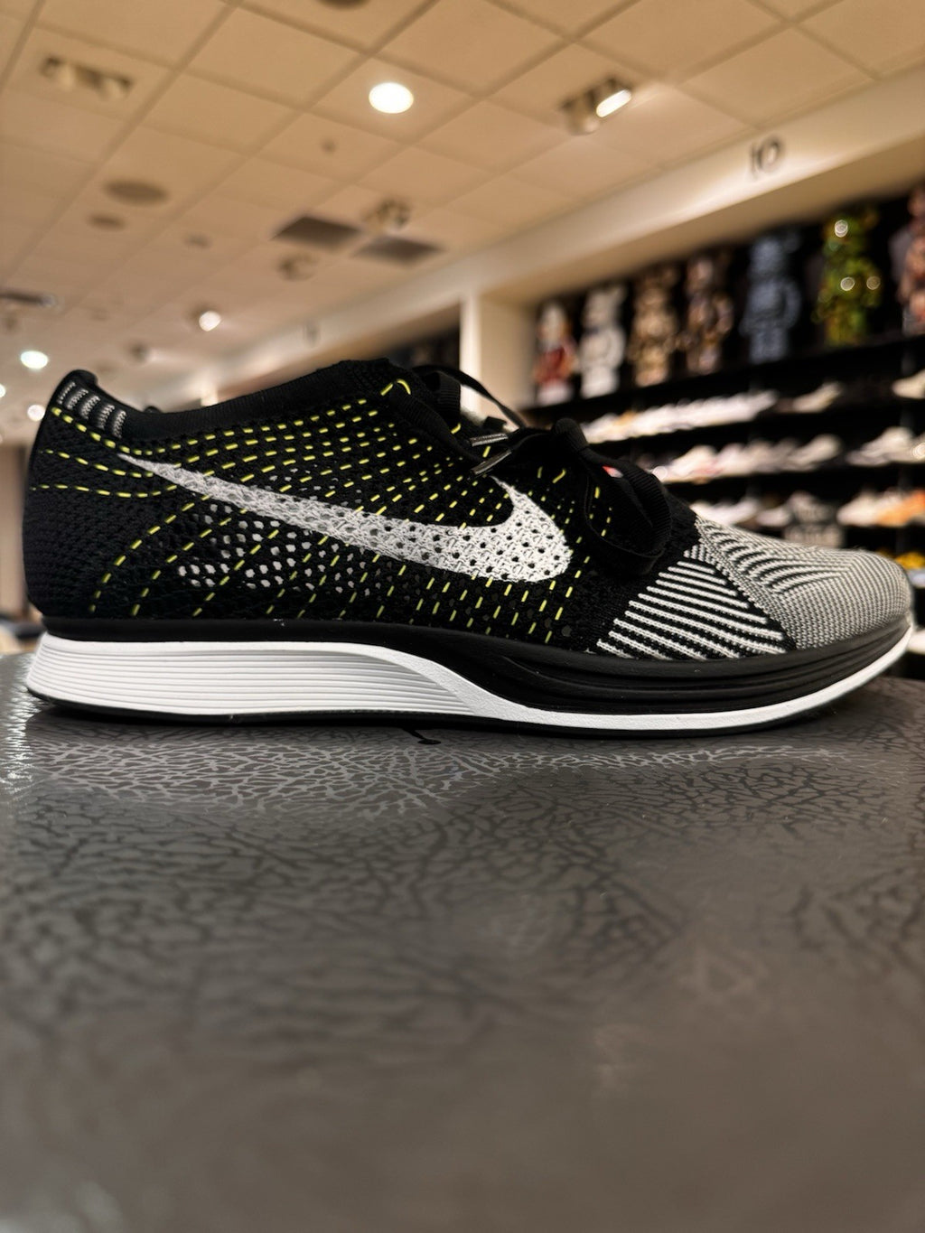 The Nike Flyknit Racer Black White Volt in size 10.5 is a stylish and comfortable athletic sneaker designed for men. Released in 2016 as part of the Nike Flyknit product line, this sneaker features a colorful and eye-catching design with a combination of black, white, and volt colors. With the signature Flyknit material known for its breathability and lightweight feel, this sneaker promises both style and performance for any active wearer.