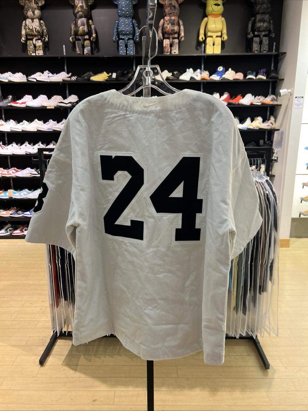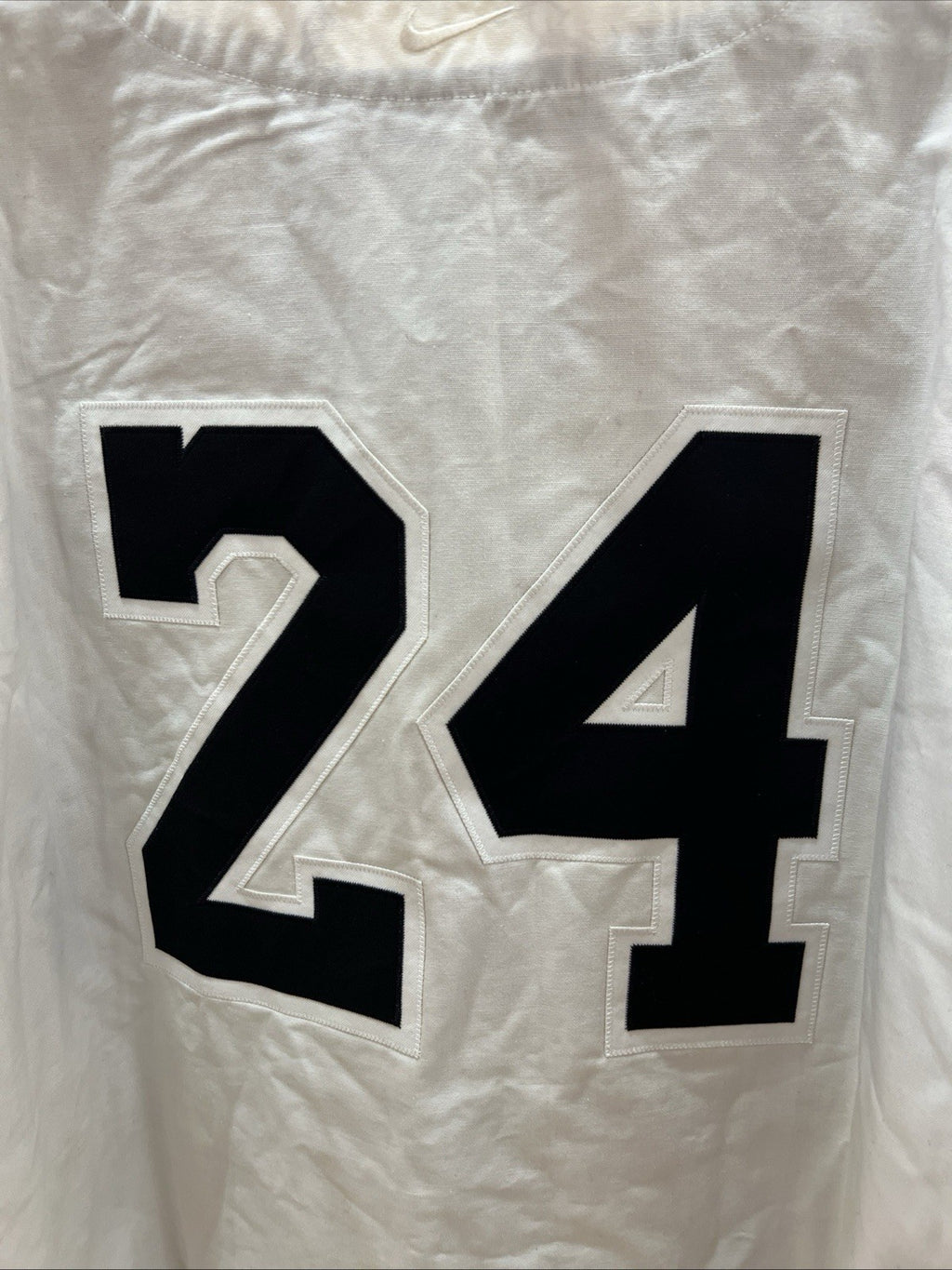 The Nike Kobe Bryant 'Mamba Out' Baseball Jersey in White/Black, size L, is an officially licensed product featuring the legendary basketball player's name and the Los Angeles Lakers team logo. Designed specifically for men, this jersey is perfect for fans of the National Basketball Association (NBA) looking to represent their favorite team in style during the regular season. Made by Nike, this jersey is a must-have for any Kobe Bryant fan looking to show their support in a fashionable way.