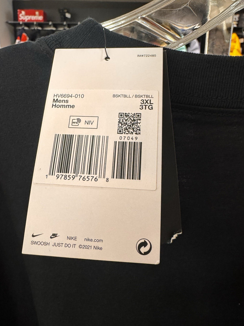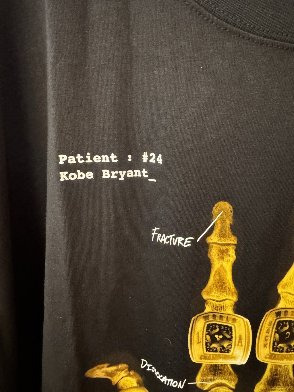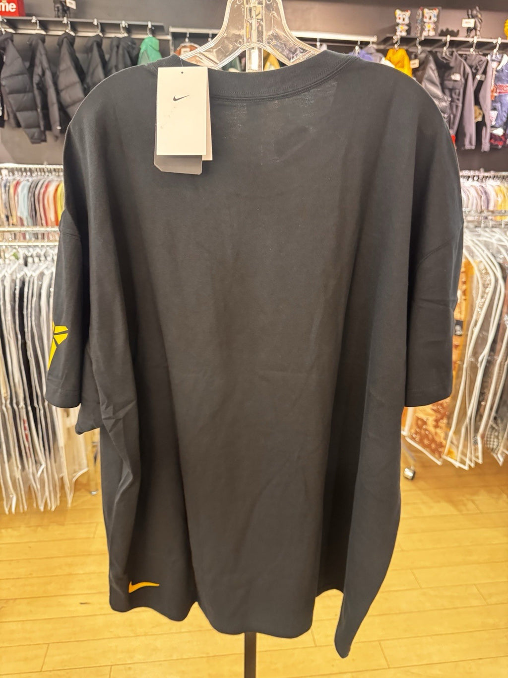 The Nike Kobe M90 X-Ray Broken Not Beaten Men's T-Shirt in size 3XL features a loose fit design with short sleeves and a crew neck neckline. Made from comfortable cotton material in a black color with blue accents, this tee showcases the Nike logo and is part of the Nike Kobe product line. Machine washable and suitable for all seasons, this oversized shirt is perfect for fans of Kobe and those looking for easy care clothing options.