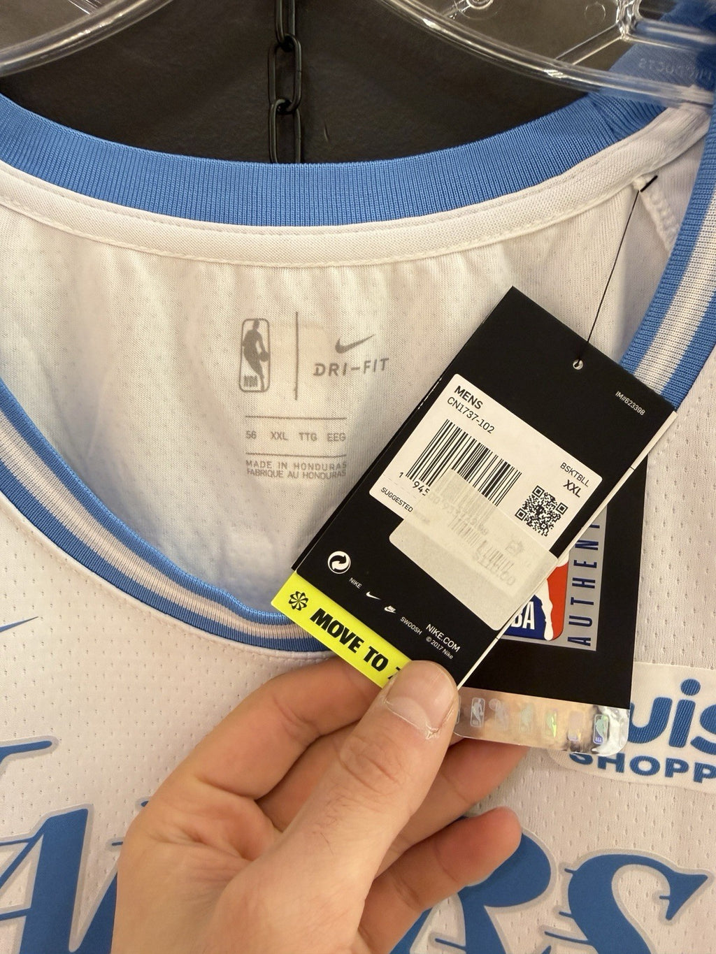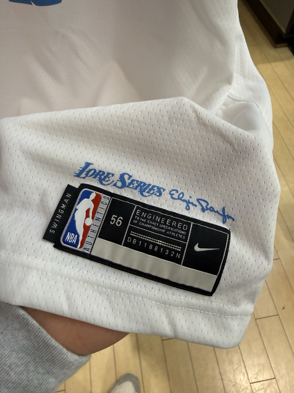 The Nike Los Angeles Lakers City Edition LeBron James #23 Jersey in size XXL is a officially licensed product for NBA basketball fans. Made by Nike, this men's jersey features the iconic colors of the Los Angeles Lakers in white, with LeBron James' signature on the back. Perfect for wearing during regular season games or as a stylish casual outfit, this jersey is a must-have for any Lakers fan looking to represent their favorite team and player.
