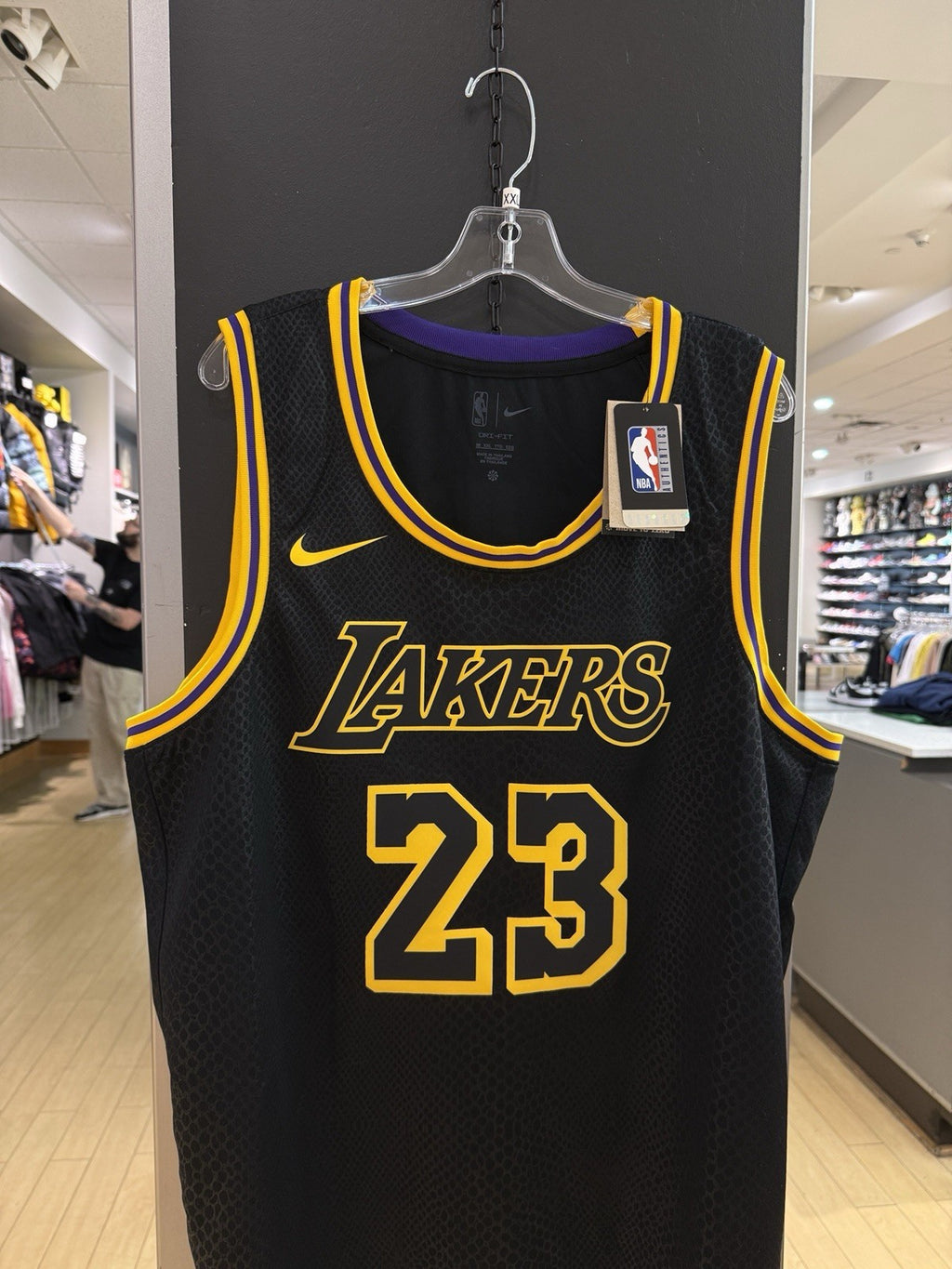 The Nike Los Angeles Lakers LeBron James Earned Edition Swingman Jersey in size XXL is an officially licensed product featuring the iconic player LeBron James. This jersey is designed for men and represents the Los Angeles Lakers in the National Basketball Association (NBA). Made by Nike, it is perfect for fans looking to show their support for both the team and player during the regular season. The jersey is a must-have for any basketball enthusiast wanting to add a piece of NBA history to their collection.