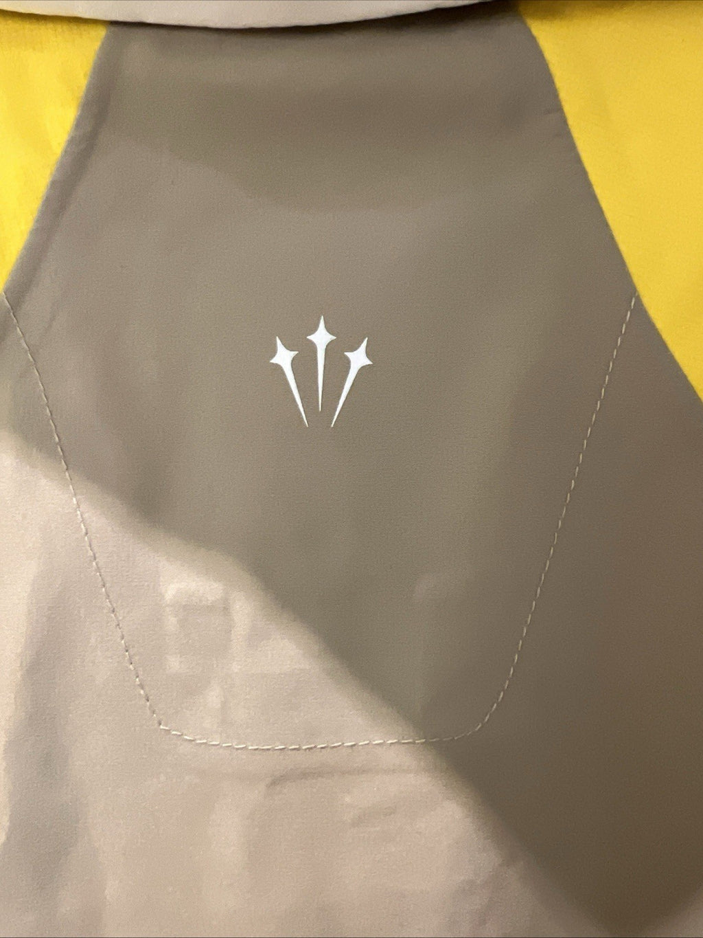 The Nike NOCTA L'Art Bala Tech Jacket in Yellow Vivid Sulfur, size XXL, is a stylish and functional jacket perfect for casual occasions during the winter season. Made with polyester lining and featuring a full zip closure with a hood, this jacket offers both comfort and protection. With its vibrant yellow color and artistic themes, this jacket is a unique and eye-catching addition to any man's wardrobe. Designed with regular fit and practical features like pockets, this jacket is a must-have for those looking to stay warm and stylish in colder weather. Made in Vietnam, this jacket combines quality craftsmanship with a bold artistic flair.
