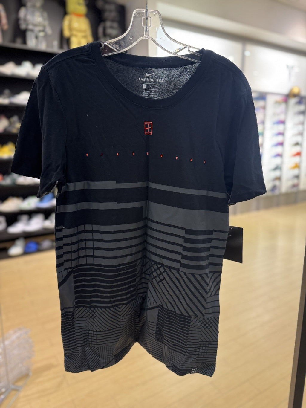The Nike Performance Tennis Court Shirt in Black is a stylish and functional activewear top designed for men. Made by the reputable brand Nike, this t-shirt features a regular fit in size Small, perfect for tennis players or anyone looking for a comfortable and high-performance shirt for their active lifestyle. With a sleek black color and tennis-specific design, this shirt is ideal for those seeking both style and functionality in their activewear wardrobe.
