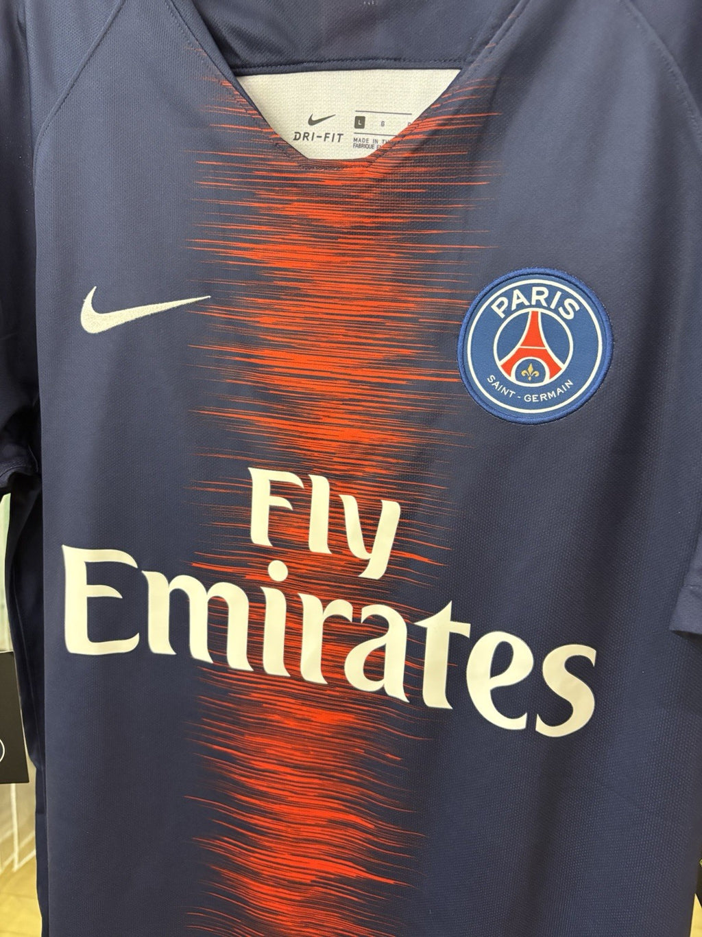 The Nike PSG NK Vapor Match Home 2018/19 Jersey in Blue, size L, is a high-quality soccer jersey designed for fans of Paris Saint-Germain. Made by the renowned brand Nike, this jersey is perfect for showing support for your favorite team on and off the field. With its authentic design and comfortable fit, it is a must-have for any fan of PSG looking to represent their team in style.