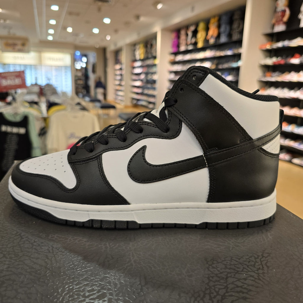 The product is a Nike Dunk High sneaker in a black and white panda colorway, released in 2022. This high top athletic shoe is designed for men, featuring a US shoe size of 10. Known for its stylish and comfortable design, the Nike Dunk High Black White Panda combines a classic sneaker style with a unique color palette, making it a standout choice for those looking for a fashionable and trendy footwear option.