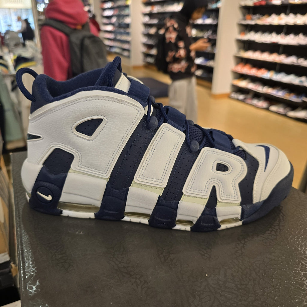 The product is a pair of Nike Air More Uptempo sneakers in size 11.5, released in 2016 for the Olympic Games. This style code 414962-104 is a men's athletic shoe that features a white colorway. As part of the Nike Air More Uptempo product line, this shoe combines style and performance for basketball or casual wear. With the iconic Nike swoosh and the Air More Uptempo model, this shoe is a classic addition to any sneaker collection.