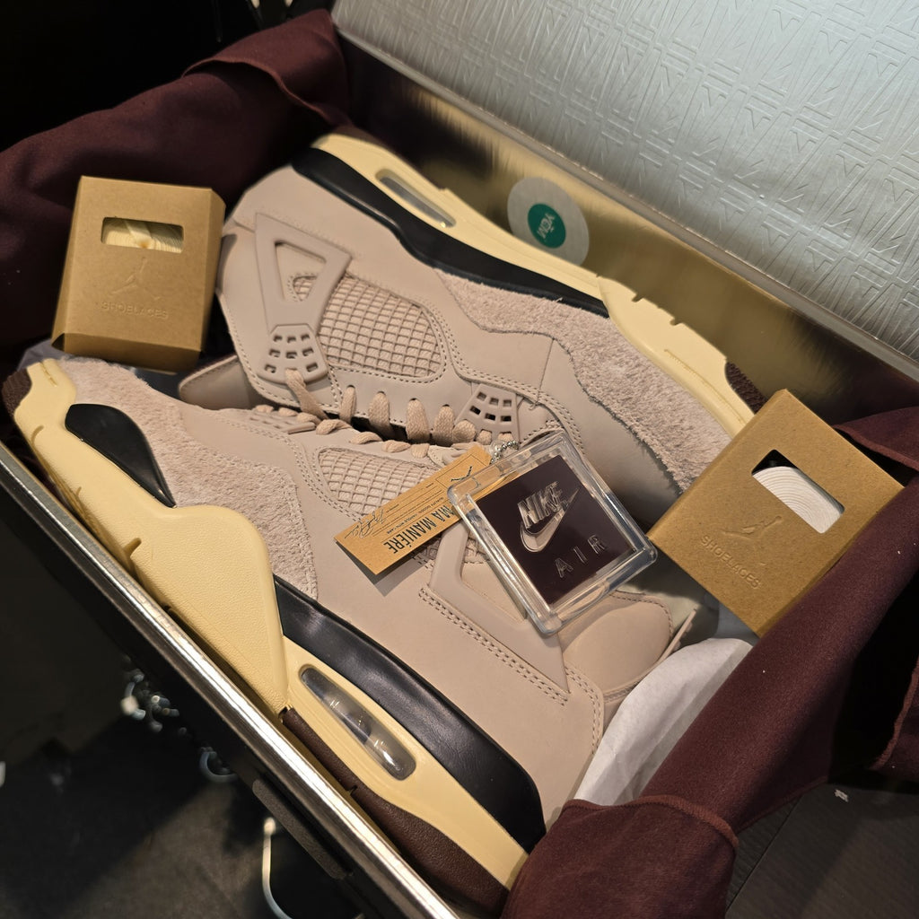 The A Ma Maniére x Air Jordan 4 Retro in size 12.5 is a stylish and feminine sneaker designed for women. This pink shoe features a nubuck upper material and belongs to the Air Jordan product line, known for its quality and iconic design. With its athletic style and unique collaboration with A Ma Maniére, this shoe offers a blend of fashion and function for those who appreciate both design and performance in their footwear.