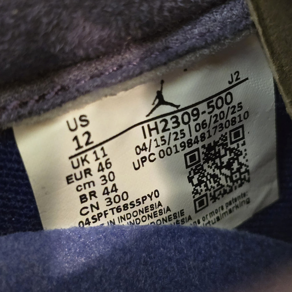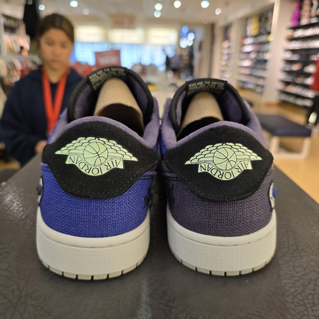 The product is a size 12 Zion Williamson x Air Jordan 1 Retro OG Low Voodoo Alternate, featuring a low top shaft style with a suede upper material in a blue color. This collaboration between Jordan and Zion Williamson offers a unique sneaker silhouette with a retro Jordan 1 design, perfect for athletic use. The style code is IH2309-500, and the shoe is part of the Air Jordan product line, making it a coveted addition to any sneaker collection for men looking to make a statement.