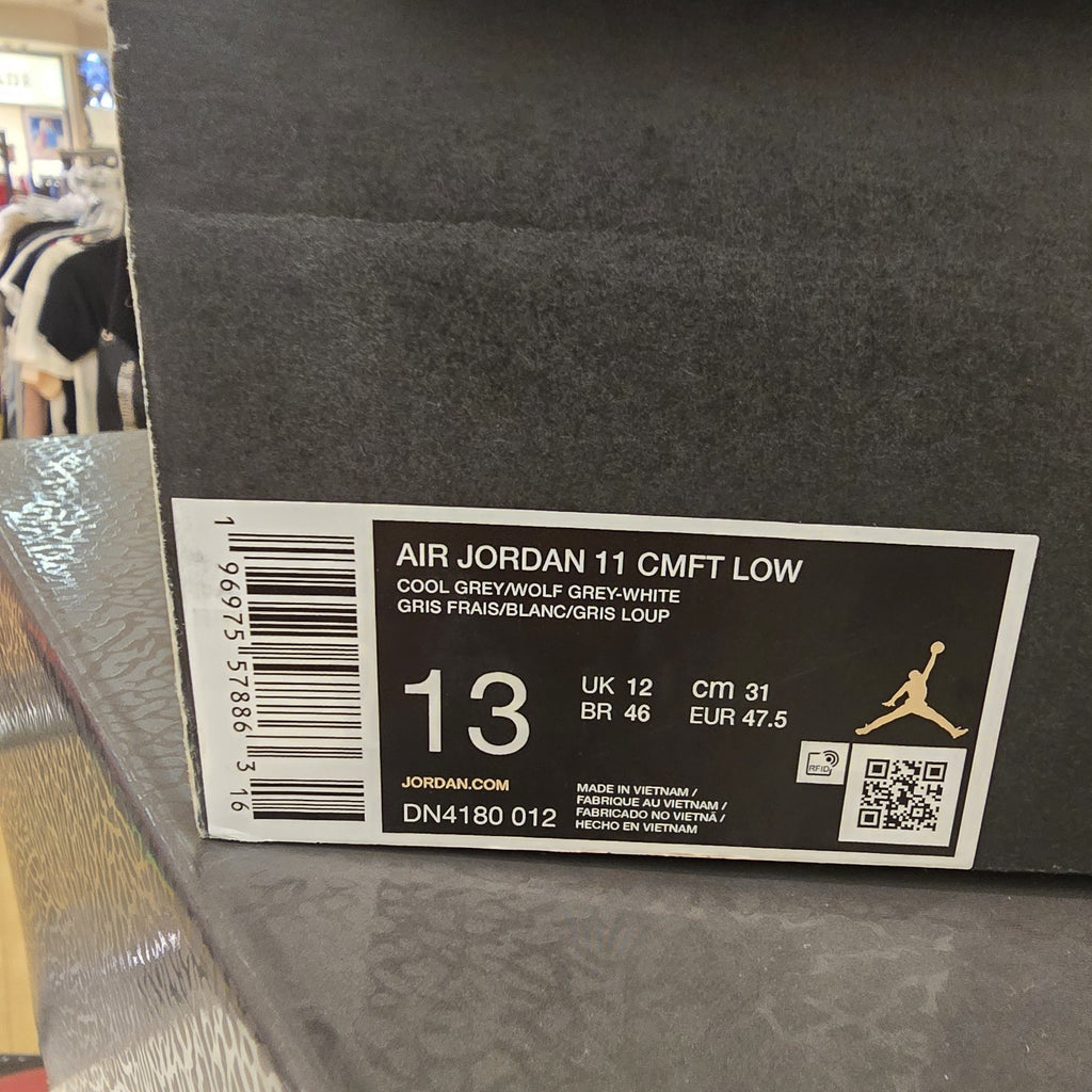 The Size 13 - Air Jordan 11 CMFT Low Cool Grey sneakers are a stylish and sleek option for men looking for athletic shoes. With a low top design and patent leather material, these sneakers feature the iconic Jordan 11 CMFT silhouette in a cool gray colorway. The model number DN4180-012 is part of the Air Jordan product line, making them a must-have for sneaker enthusiasts and fans of the brand. Released in 2024, these sneakers combine comfort and style for a versatile addition to any footwear collection.