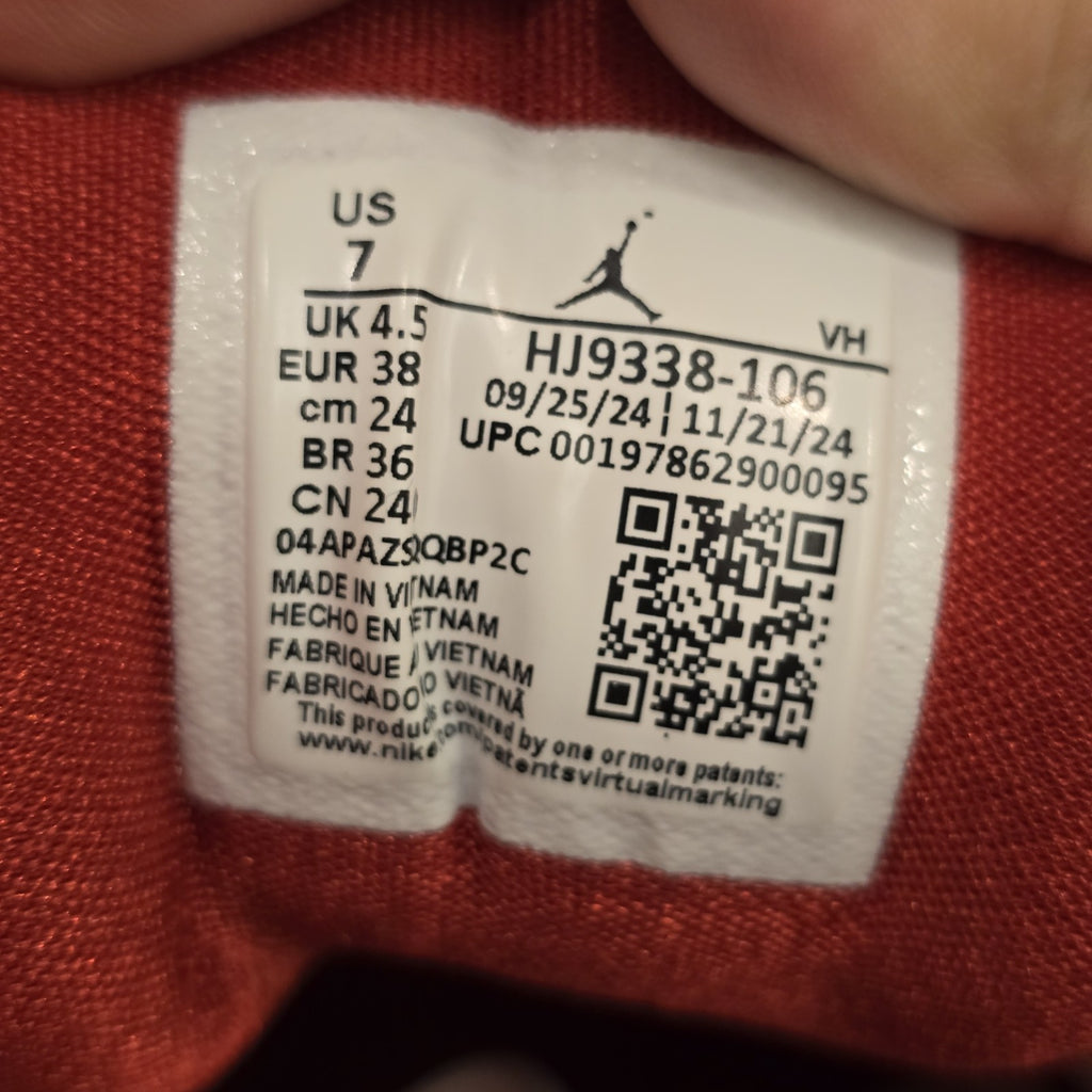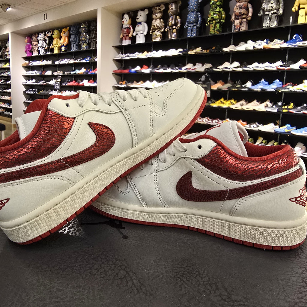 The product is a Size 7 Air Jordan 1 Low Ruby Women's sneaker. It features a low top shoe shaft style, ivory color with a leather upper material, and belongs to the Air Jordan product line. The sneaker is designed specifically for athletic use, with a ruby character theme that adds a unique touch to the design. Perfect for women who want a stylish and comfortable shoe for various activities or everyday wear.