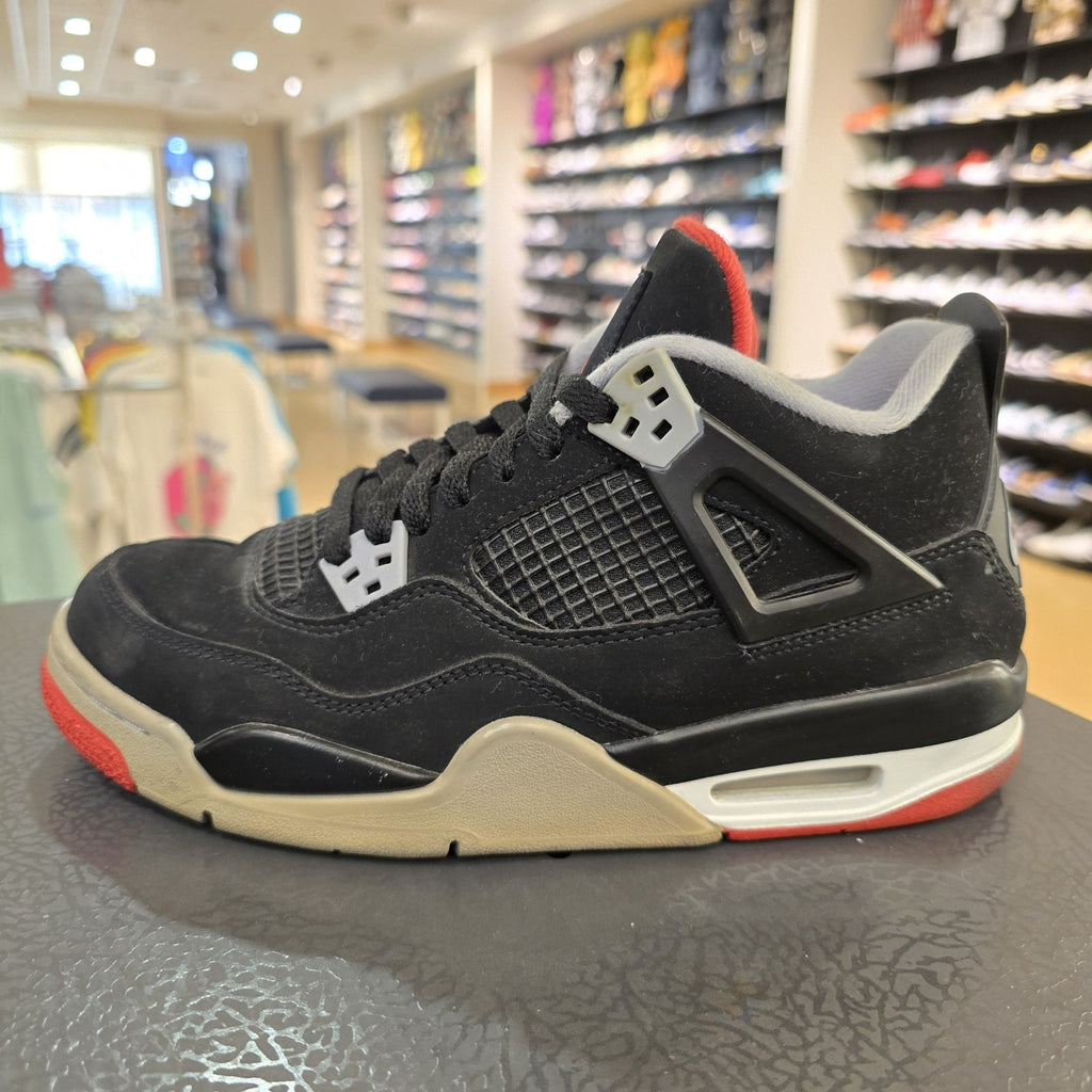 The product is a pair of Size 7Y Jordan 4 Retro Bred 2019 GS sneakers from the Air Jordan line. These black sneakers feature the iconic Retro theme with the Air Jordan 4 silhouette, including the signature Bred design. Released in 2019, these athletic shoes are perfect for sneaker enthusiasts who appreciate the timeless style and quality associated with the Jordan brand. With a style code of 408452060, these sneakers are a must-have addition to any sneaker collection.