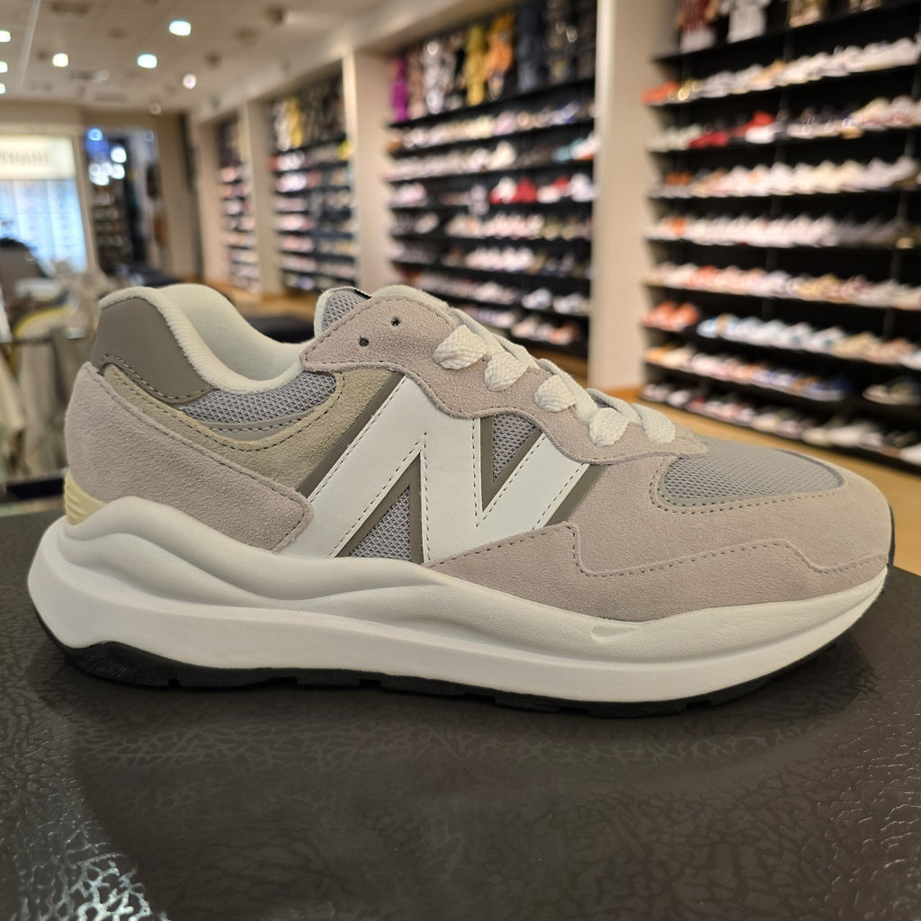 The product is a pair of men's athletic shoes from New Balance, specifically the 57/40 model in a size 8. It features a stylish design with a rain cloud motif, making it a unique and fashionable choice for those looking for a new pair of sneakers. The shoes are part of the New Balance 57/40 product line and have a textile upper material, offering both comfort and durability. The release year of 2021 ensures that these sneakers are up-to-date with the latest trends in athletic footwear.