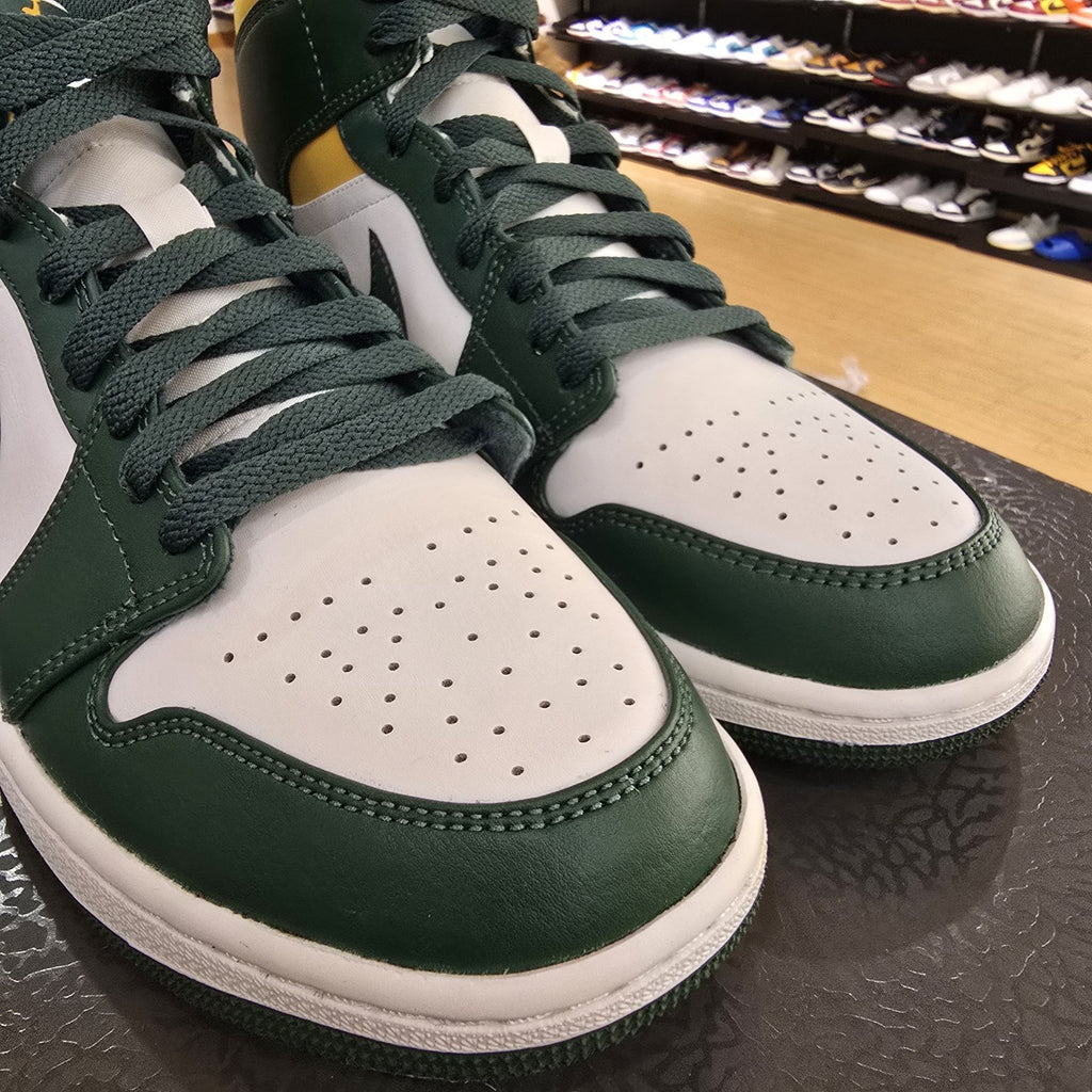 The Size 9.5 Jordan 1 Mid Sonics is a stylish and iconic sneaker from the Air Jordan product line. With a mid-top shoe shaft style and a color scheme featuring multicolor, this athletic shoe is designed for men and released in 2021. The model, Air Jordan 1, is known for its classic silhouette and comfortable fit. Perfect for sneaker enthusiasts looking for a versatile and trendy addition to their collection.