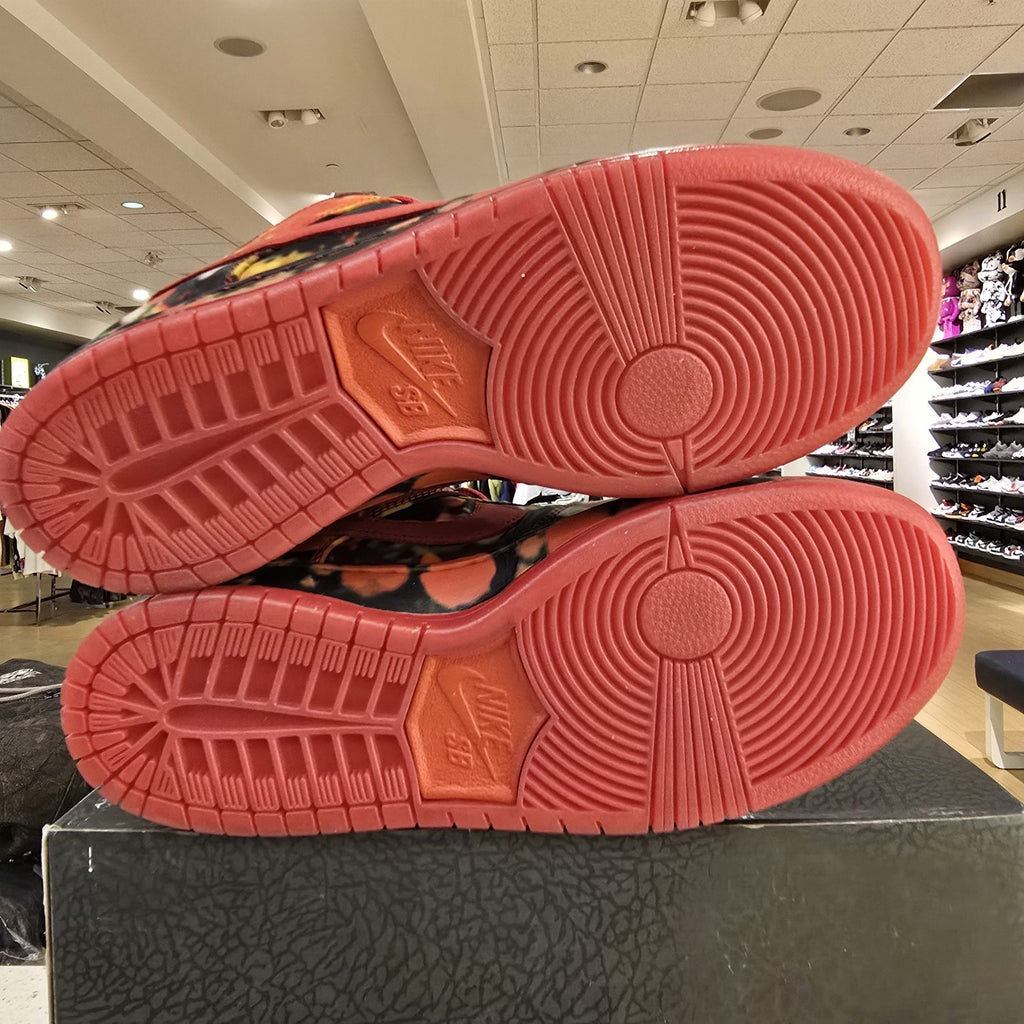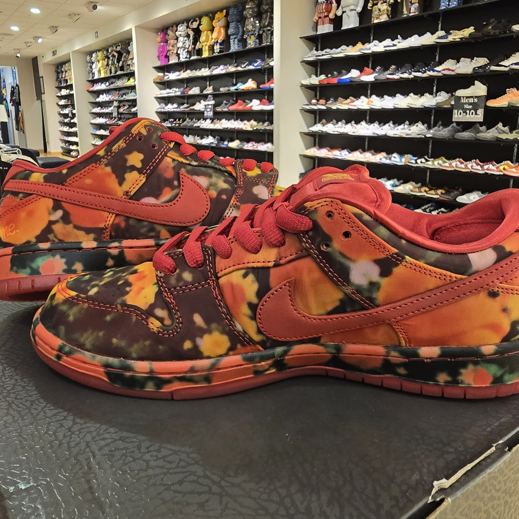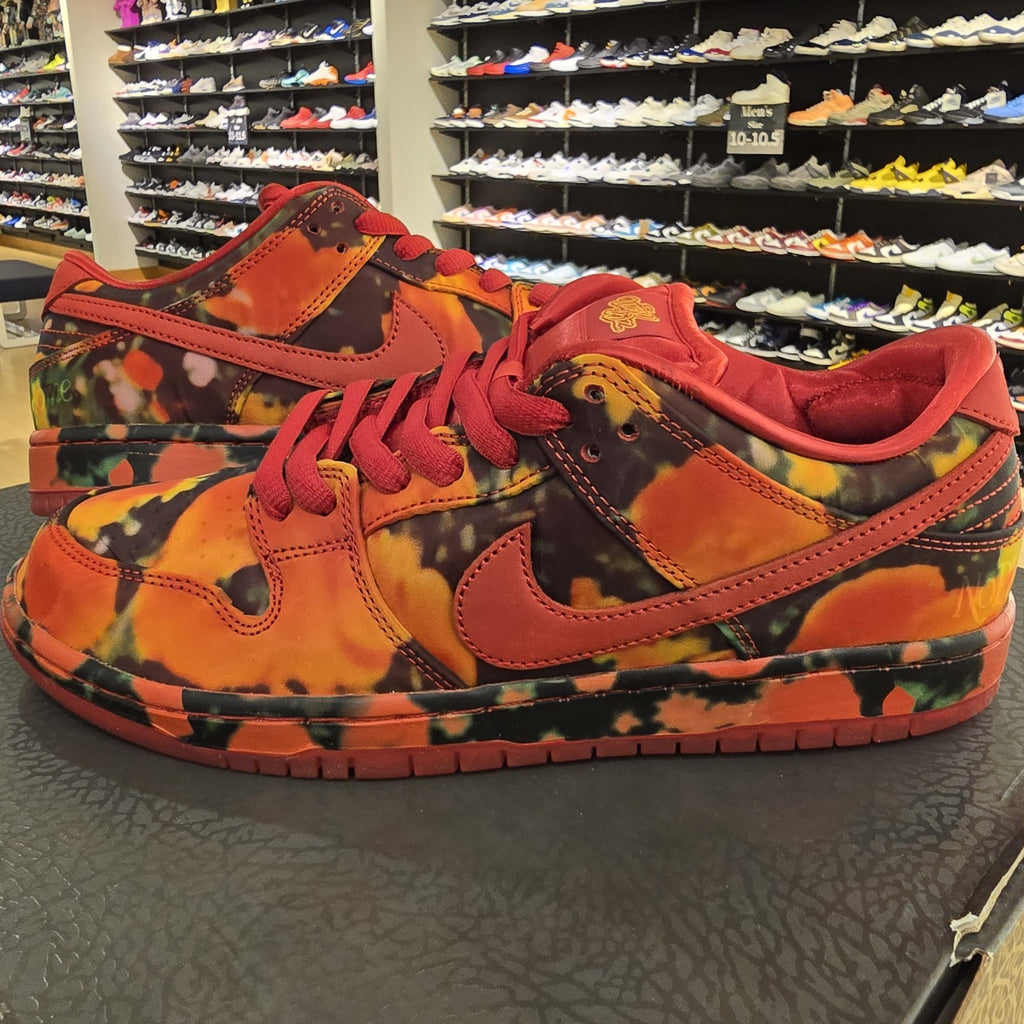 The product is a men's athletic shoe in size 9.5, featuring a low top design and vibrant red color inspired by Nike's collaboration with The Wizard of Oz. The shoe is part of the Nike Dunk product line and is made with a textile upper material. With a unique style code and release year, this sneaker combines comfort and style for various activities, including boxing. Perfect for those looking to make a bold statement with their footwear.