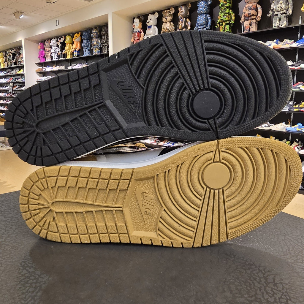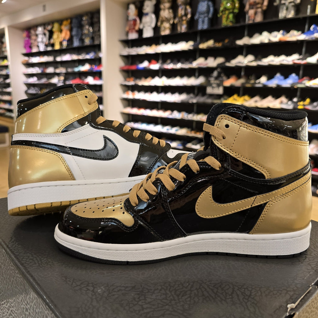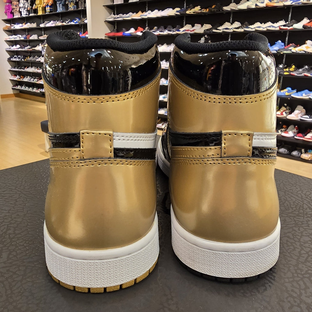 The Size 9 Air Jordan 1 Retro OG NRG High Gold Top 3 is a stylish and iconic sneaker from the Jordan brand. Featuring a high top design with a satin patent leather upper, these athletic shoes are a statement piece for men. Released in 2017, this model (style code 861428-001) showcases the signature Air Jordan 1 silhouette in a striking gold colorway. A must-have for sneaker enthusiasts looking to add a touch of luxury and style to their collection.