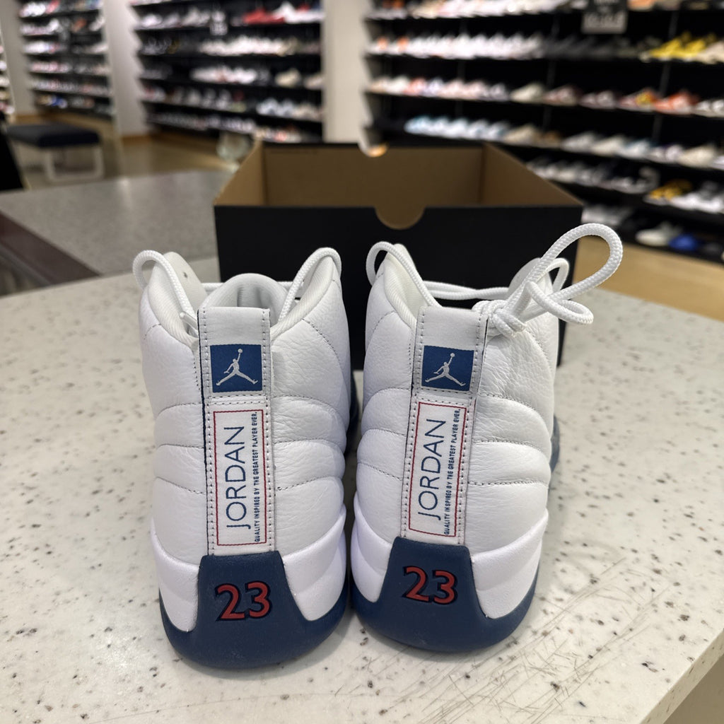 The product is a size 9 Air Jordan 12 Retro 2025 in French Blue, which is a variant of the popular sneaker model. This particular pair is missing the lid, but it still features the iconic Jordan brand, leather upper material, and belongs to the Air Jordan product line. With a sleek design and athletic style, the sneaker is a stylish choice for men looking to add a classic silhouette to their footwear collection.