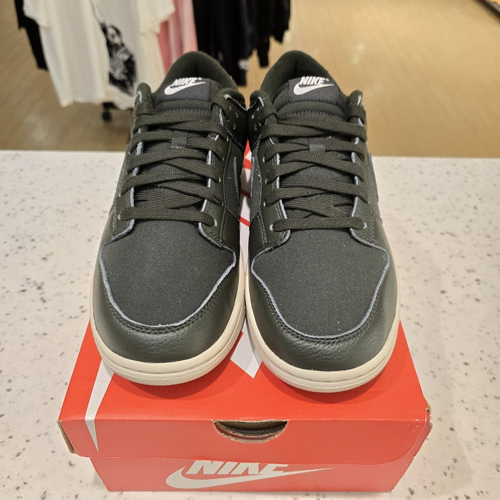 The product is a pair of Nike Dunk Low Retro PRM Sequoia sneakers in size 9. This athletic shoe features a low top silhouette and a stylish design in a green colorway. Part of the Nike Dunk product line, these sneakers are designed for men and maintain the classic Nike Dunk style with modern updates. Perfect for casual wear or athletic activities, these sneakers offer a comfortable fit and a trendy look for everyday wear.