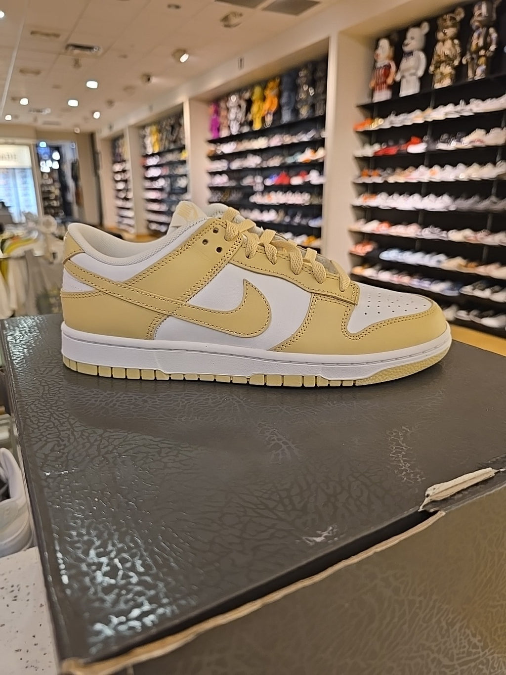 The Nike Dunk Low Team Gold in size 9 is a stylish and athletic sneaker designed for men. This shoe features a low top shaft style with a yellow colorway, perfect for adding a pop of color to any outfit. Made with a leather upper material, these Nike Dunks combine both durability and fashion for a versatile addition to your shoe collection. Released in 2023, this model (DV0833-100) is part of the Nike Dunk product line, known for its quality craftsmanship and iconic design.