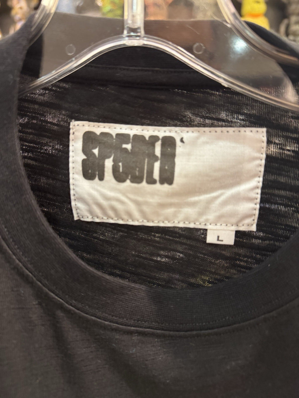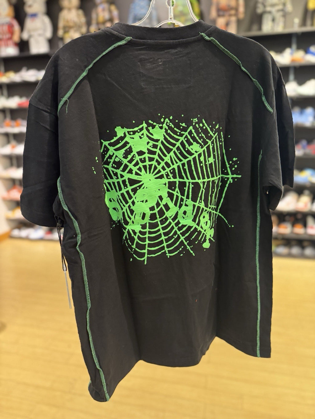The Sp5der Contrast Stitch Slub Tee in Black, Size Large, is a stylish and trendy men's T-shirt featuring a unique stitch character design. This regular fit t-shirt is perfect for men looking to make a statement with their clothing choice. With its black color and large size, this t-shirt is versatile and can be easily paired with various bottoms for a fashionable look. Ideal for casual wear, this Sp5der tee is a great addition to any wardrobe.