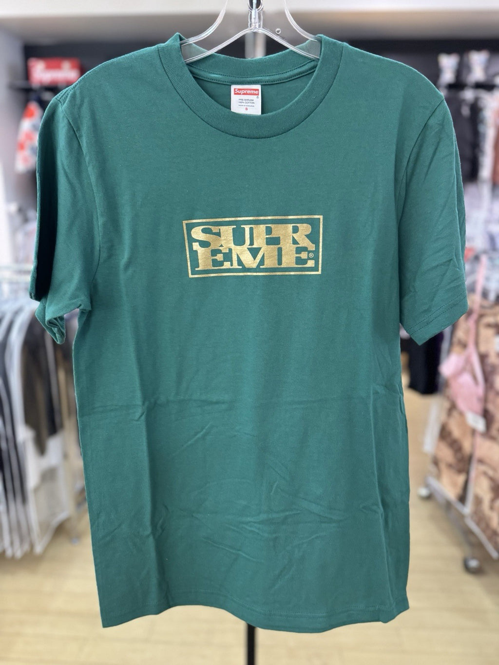 The Supreme Connect Tee in Light Pine, size small, is a men's t-shirt from the renowned brand Supreme. This regular fit t-shirt features a stylish design and vibrant green color, perfect for adding a pop of color to any casual outfit. The Supreme Connect model is a trendy addition to any wardrobe, showcasing the brand's unique style and attention to detail.