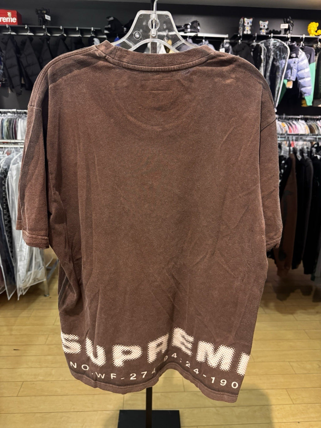 The product is a brown Supreme discharge top in size M, designed for men. It is a regular fit T-shirt made by the well-known brand Supreme. This top is a stylish and trendy choice for men looking to add a unique and fashionable piece to their wardrobe.