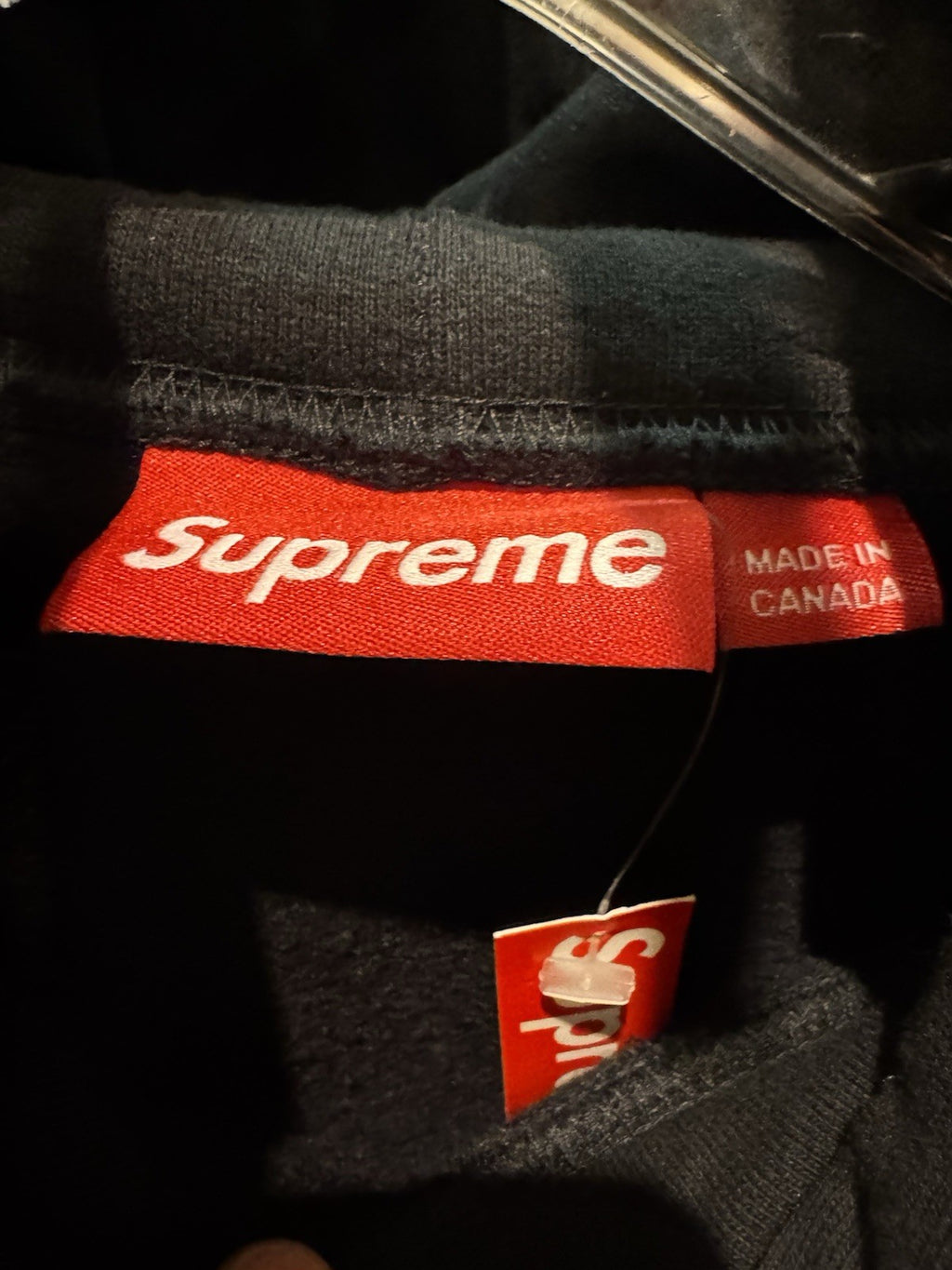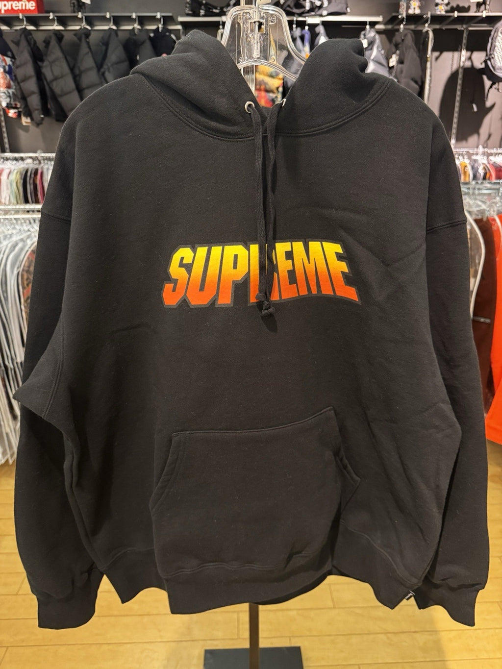 The Supreme Gradient Hooded Sweatshirt in Black is a stylish and comfortable pullover sweatshirt designed for men in size L. Made by the renowned brand Supreme, this sweatshirt features a hood for added warmth and a sleek gradient design that adds a modern touch to the classic black color. Perfect for casual wear or outdoor activities, this sweatshirt is a versatile and fashionable addition to any man's wardrobe.