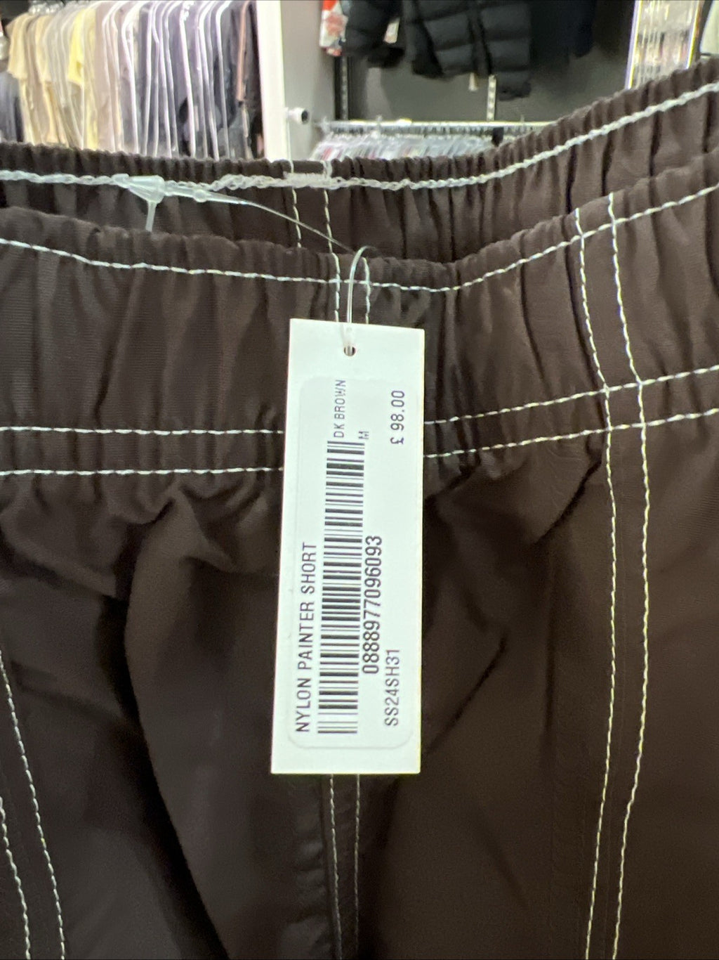 The Supreme Nylon Painter Short in brown, size M, is a stylish and practical piece of men's clothing. Made from durable nylon material, these shorts feature a drawstring closure for a comfortable fit. The regular fit and nylon fabric make them perfect for everyday wear. Additionally, the shorts include pockets for convenience and functionality.