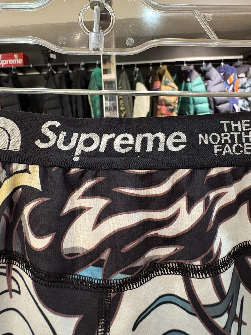 The product is a Supreme The North Face Base Layer Pant in a multicolor dragon design, specifically sized as Extra Large for men. This activewear pant is perfect for outdoor activities, featuring a stylish base layer design with a unique dragon theme. Made by the renowned brand Supreme, these pants offer both comfort and style for any adventure.
