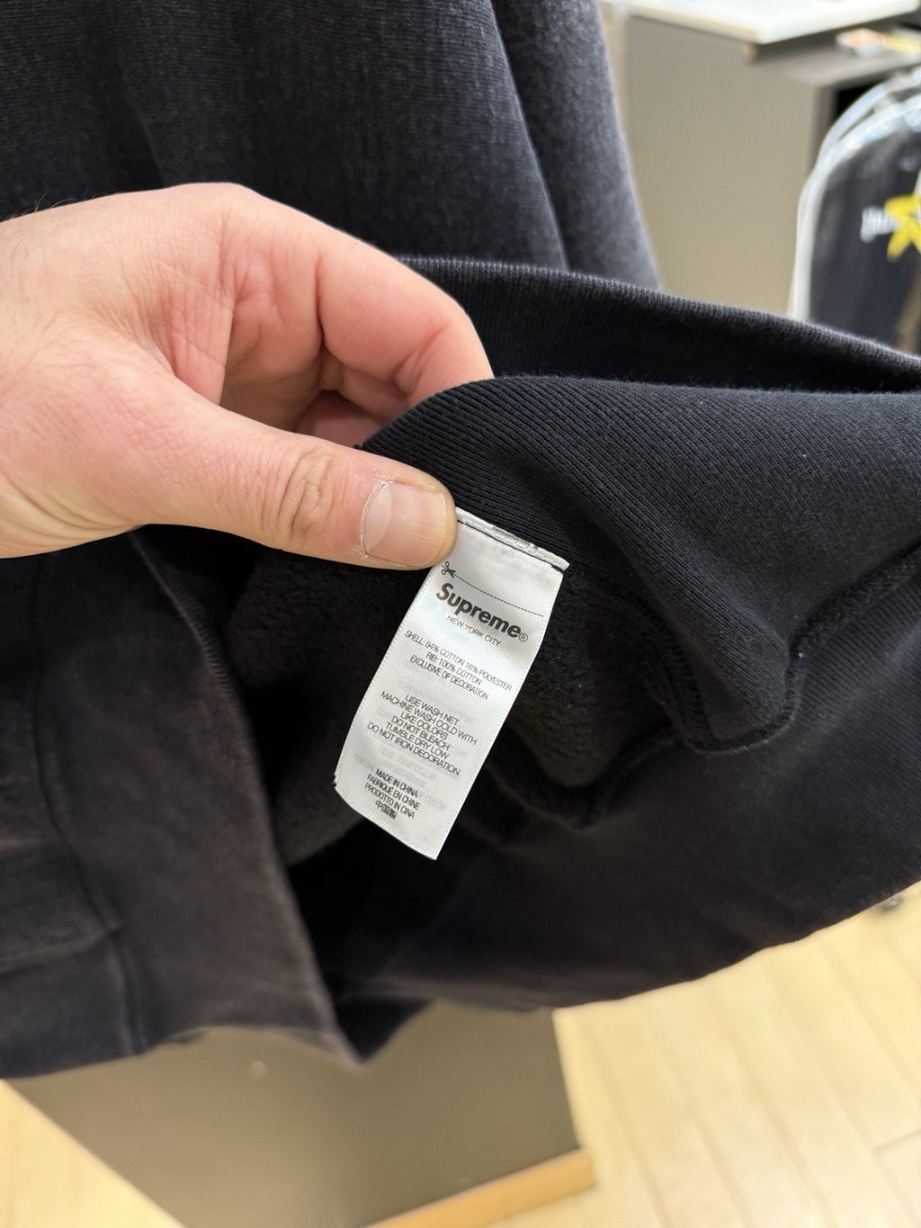 The product is a Supreme Washed Box Logo Crewneck Sweatshirt in black size XXL. This pullover sweatshirt features a crew neck and is designed for men. The logo accents add a stylish touch to the overall look of the sweatshirt.