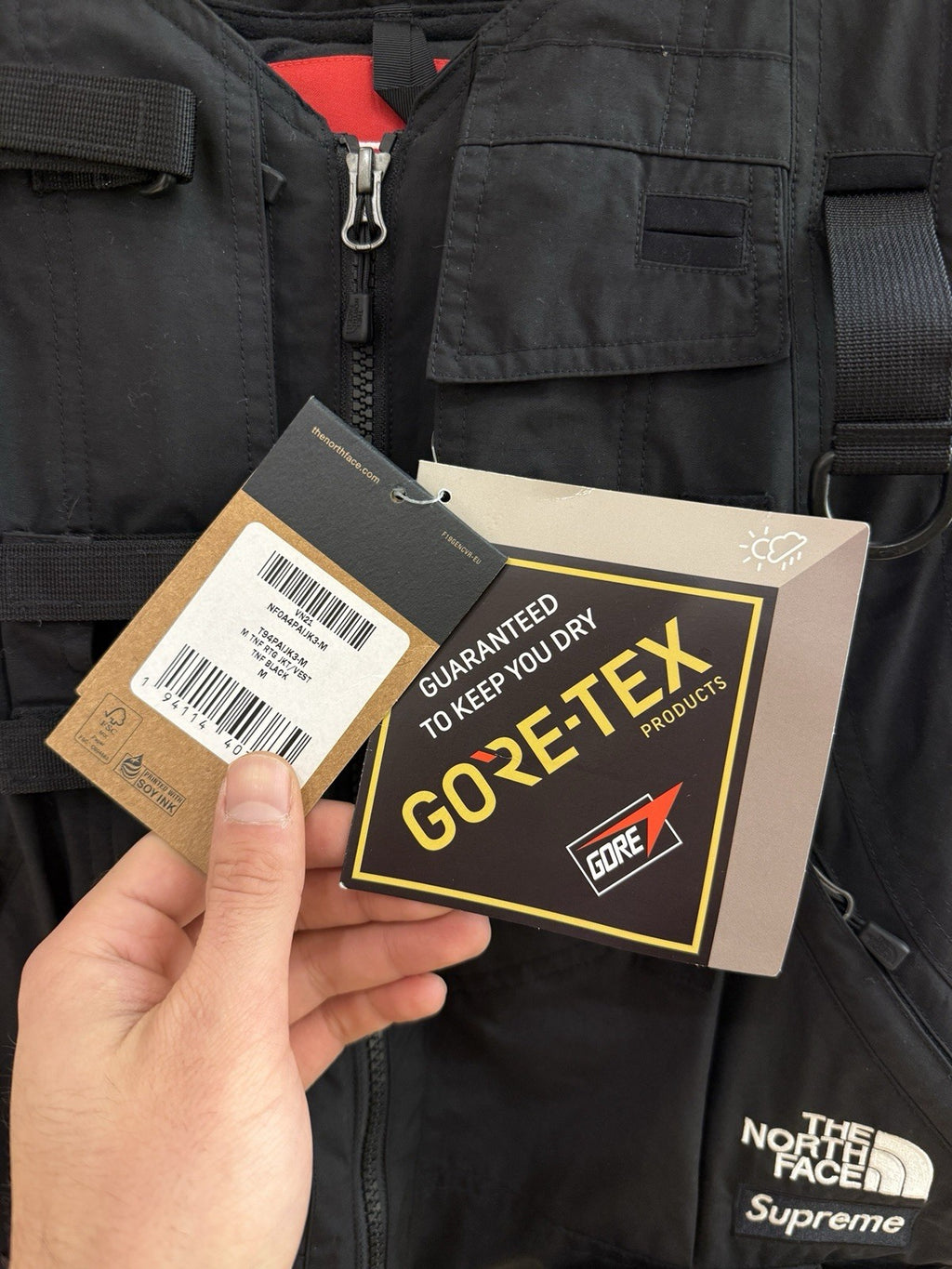 The North Face x Supreme x RTG VEST in size M is a stylish and functional outerwear piece designed for men. Made of durable nylon material with a solid black color, this vest features a zip closure and a stand-up collar for added style. Perfect for outdoor activities like hiking in the winter, fall, or spring, this vest is machine washable for easy care. The collaboration between The North Face and Supreme adds a touch of urban flair to this practical and versatile garment, making it a must-have for those who appreciate quality and style in their clothing choices.