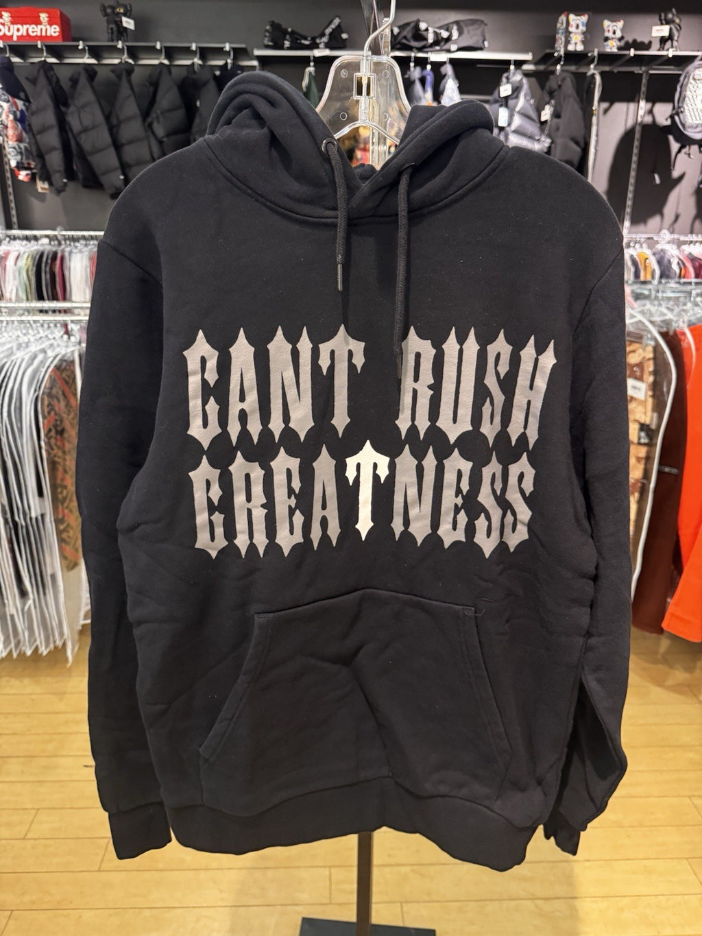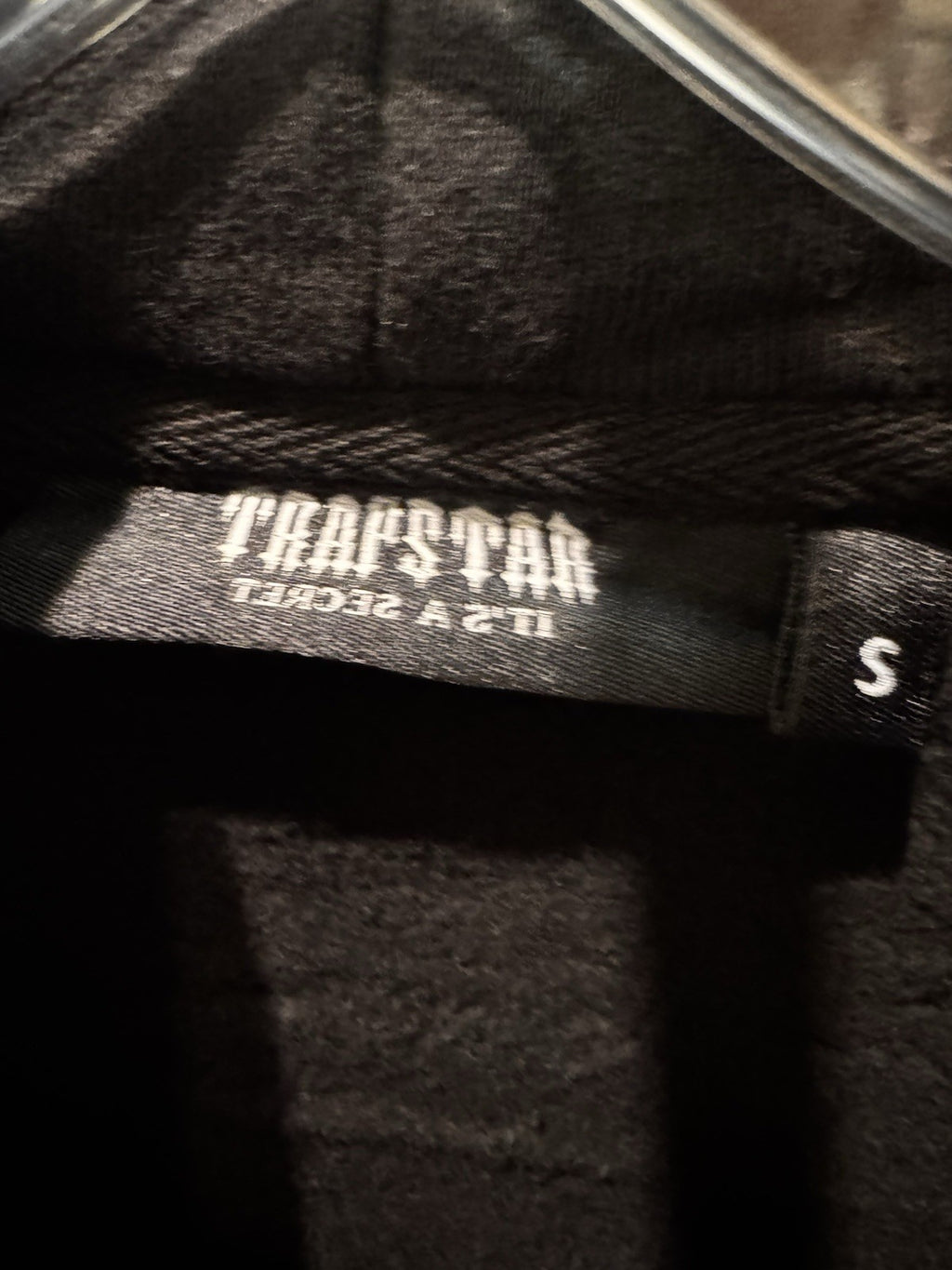 The product is a Trapstar X Central Cee black hoodie in size small. This pullover hoodie is designed for men and features the signature style of the brand. It is made for regular fit and is perfect for those looking for a comfortable and stylish activewear piece.