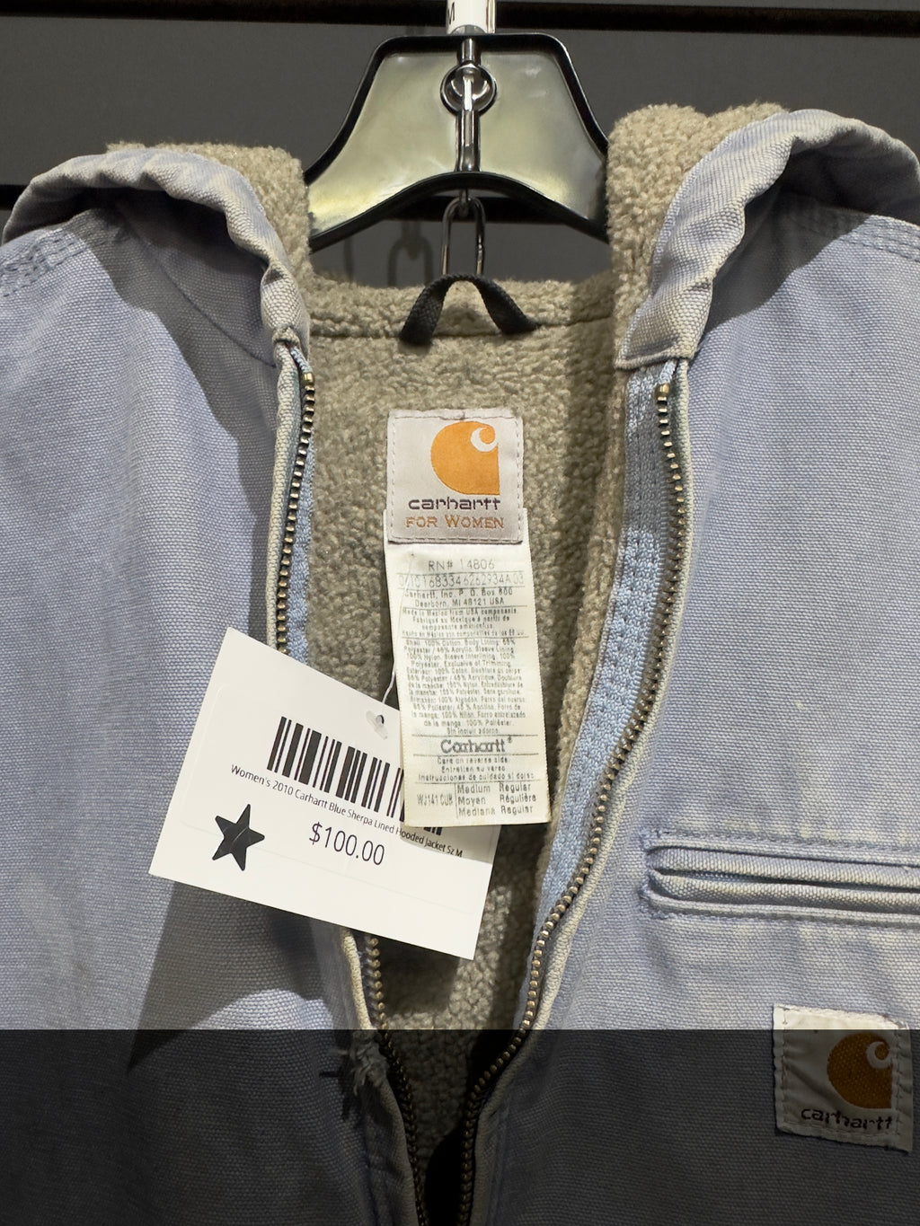 Women's 2010 Carhartt Blue Sherpa Lined Hooded Jacket Sz M